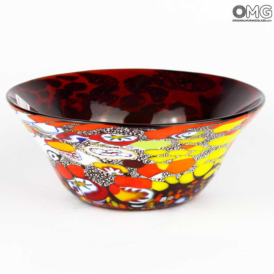 Bowl vase made with the technique of glass blowing and murrina (millefiori and stains) decoration. The vase is signed by the master Rossi.
