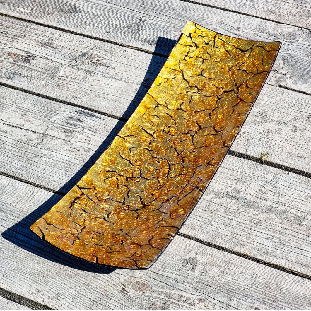 Plate Rectangular Yellow Amber & Gold - Murano Glass