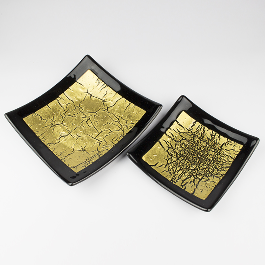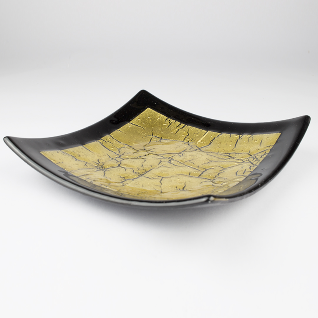Plate made with the tecnique of glass fusing, embellished by a precious real gold leaf 24kt. The plate come in different size, the small one can be used as empty pockets, the bigger as centerpiece..