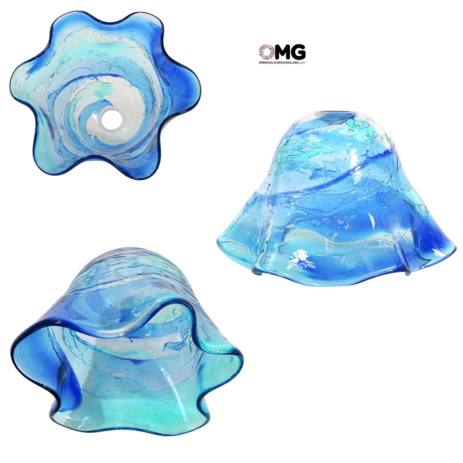 Italy iTaly lighting collection blue color, blowed made with sbruffi technique.