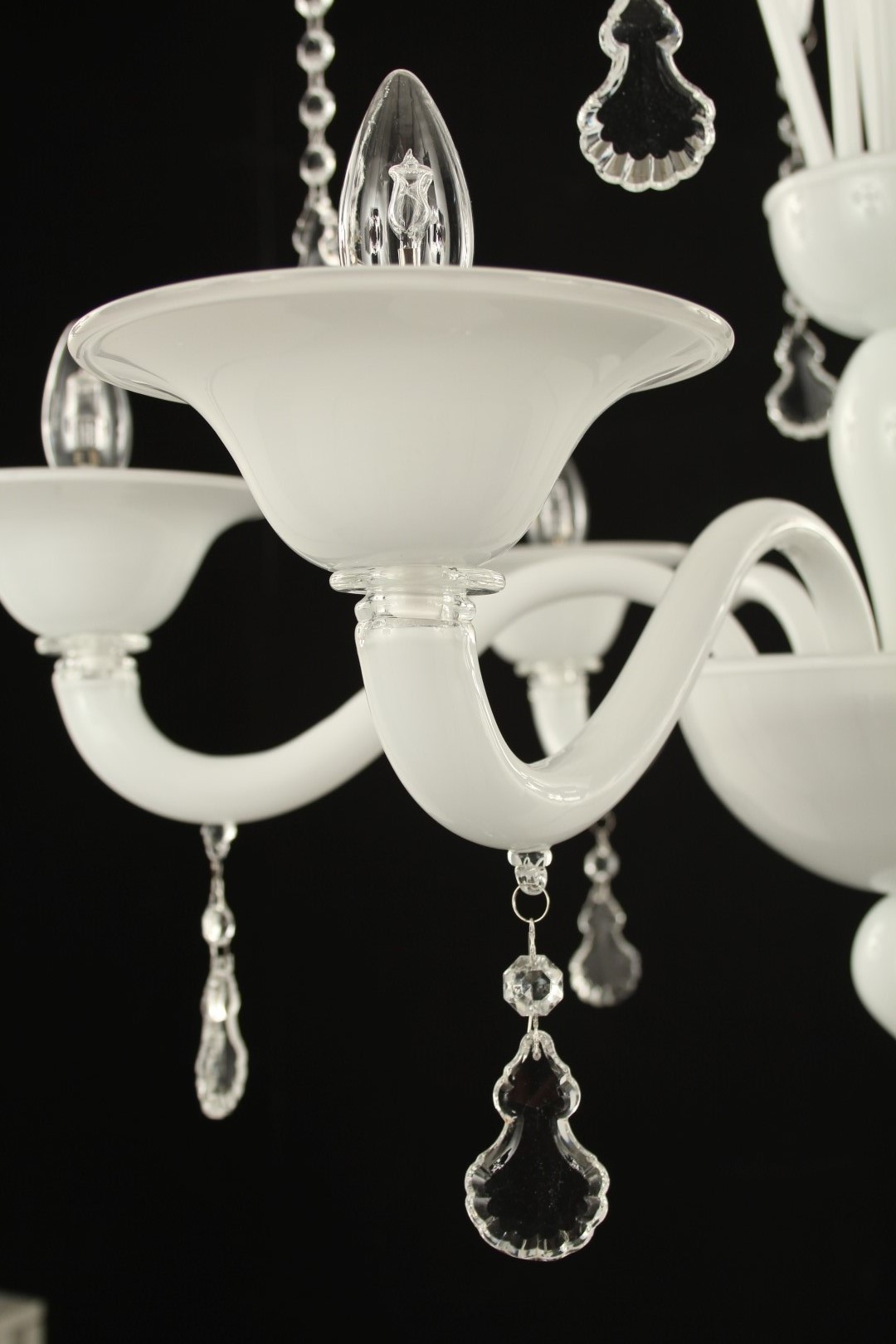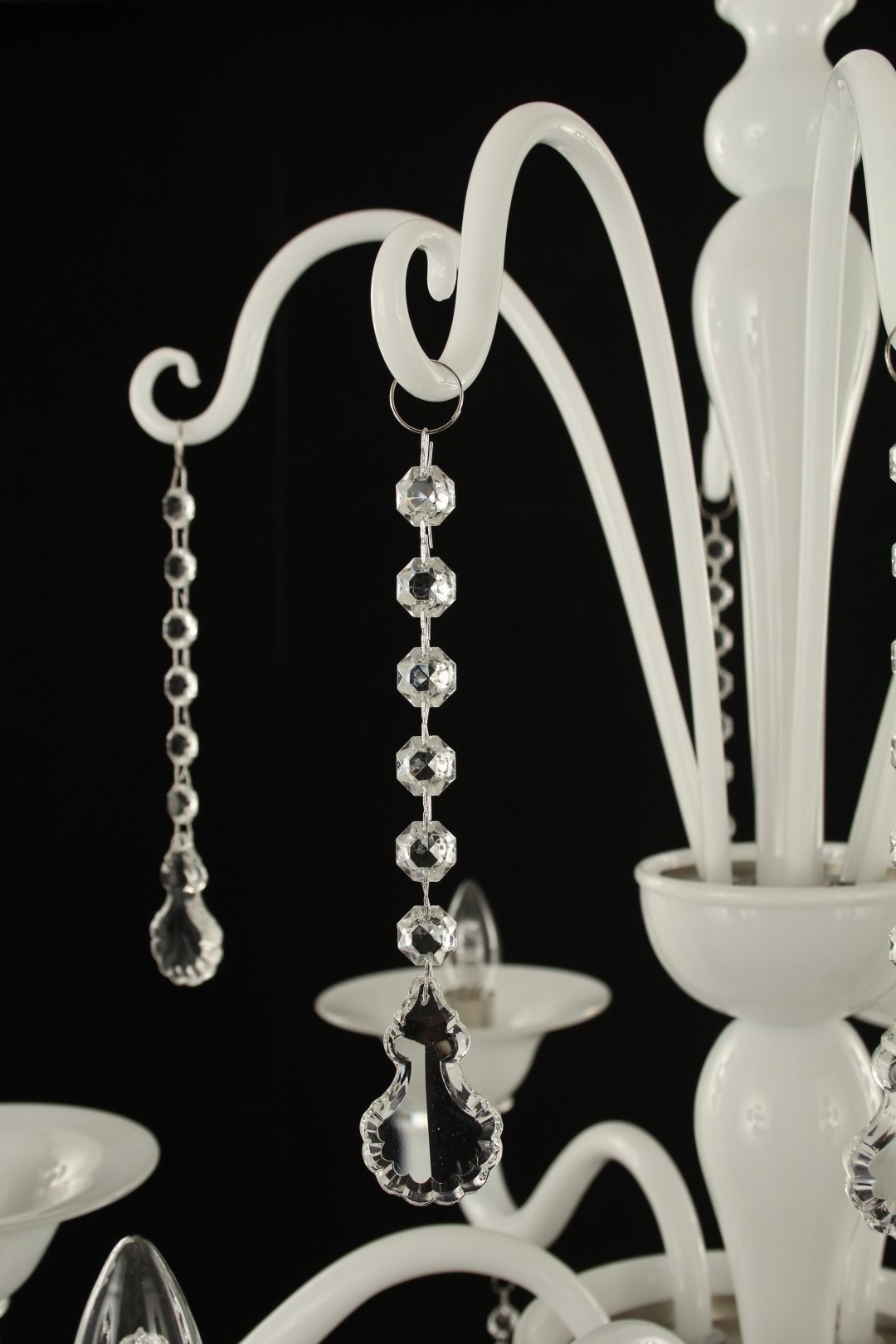 Luxury Chandelier in white matt glass color with crystall pendants.