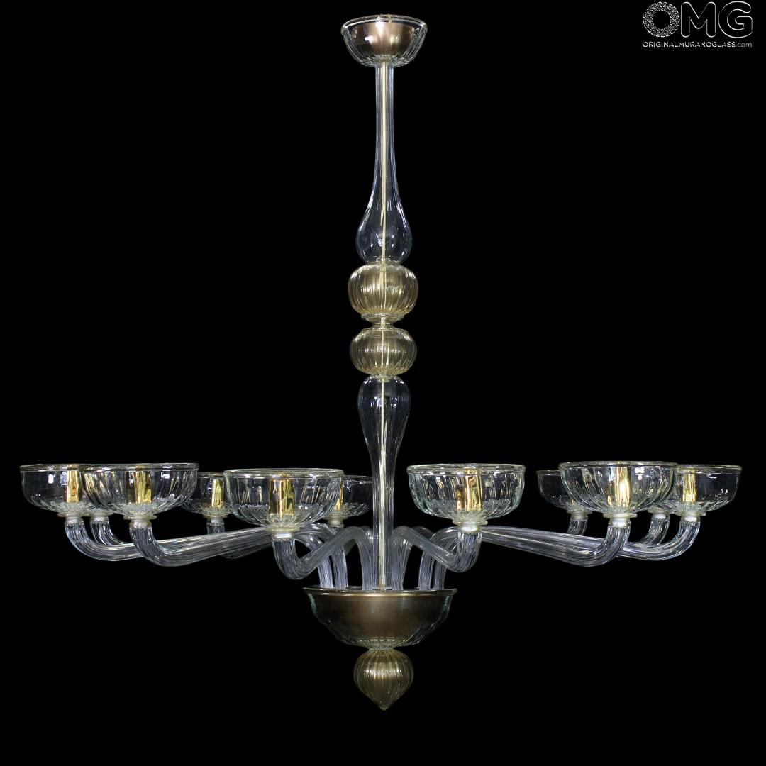 Chandelier in Murano crystal glass and details in gold 24kt.
