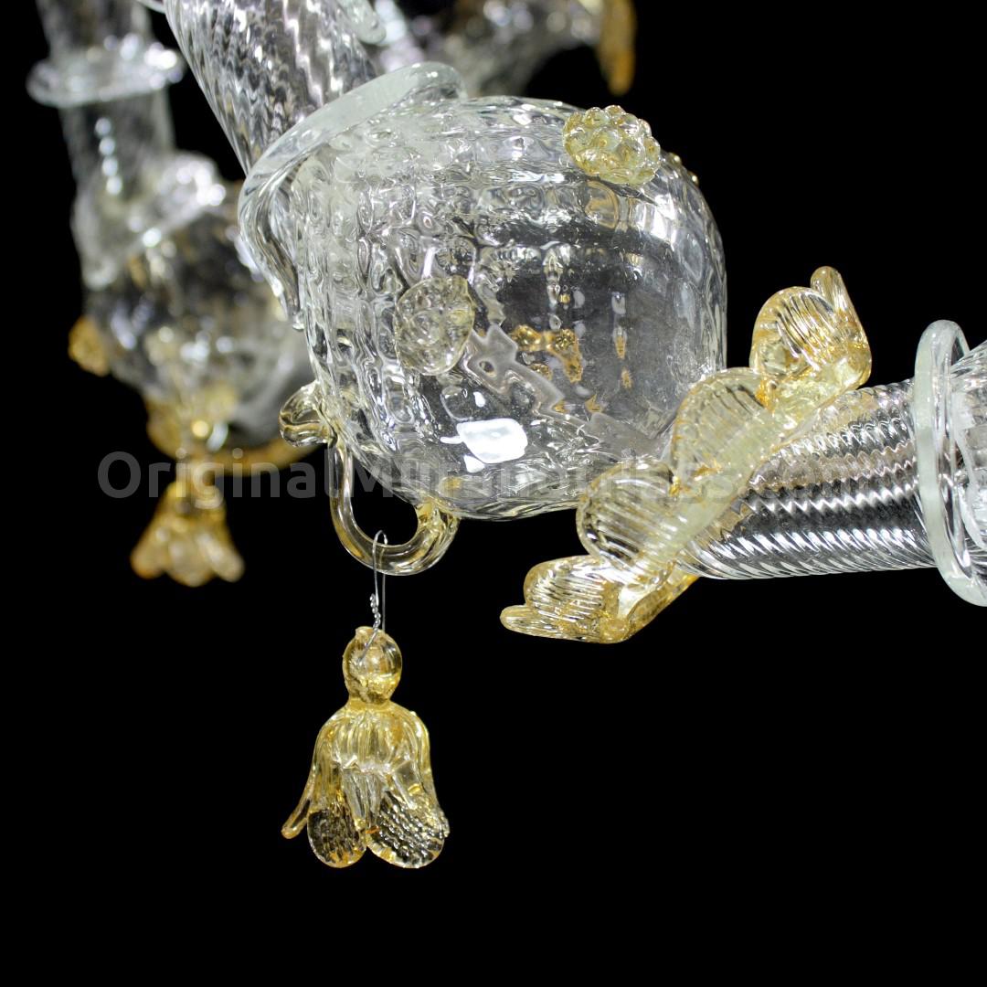 Rezzonico chandelier 6 lights in glass Venetian artistic color with pure crystalline finishings and polychrome details, glass gold 24kt.
