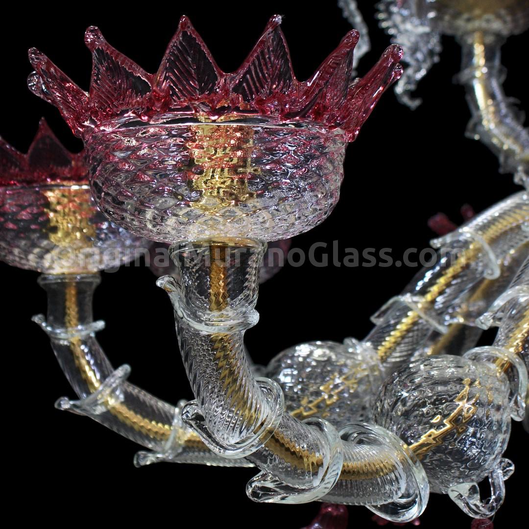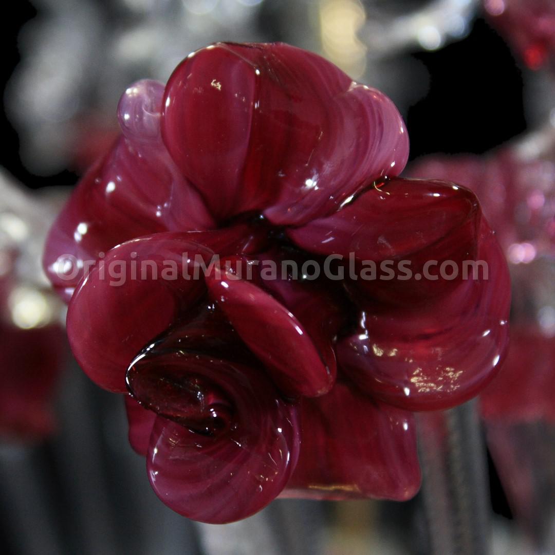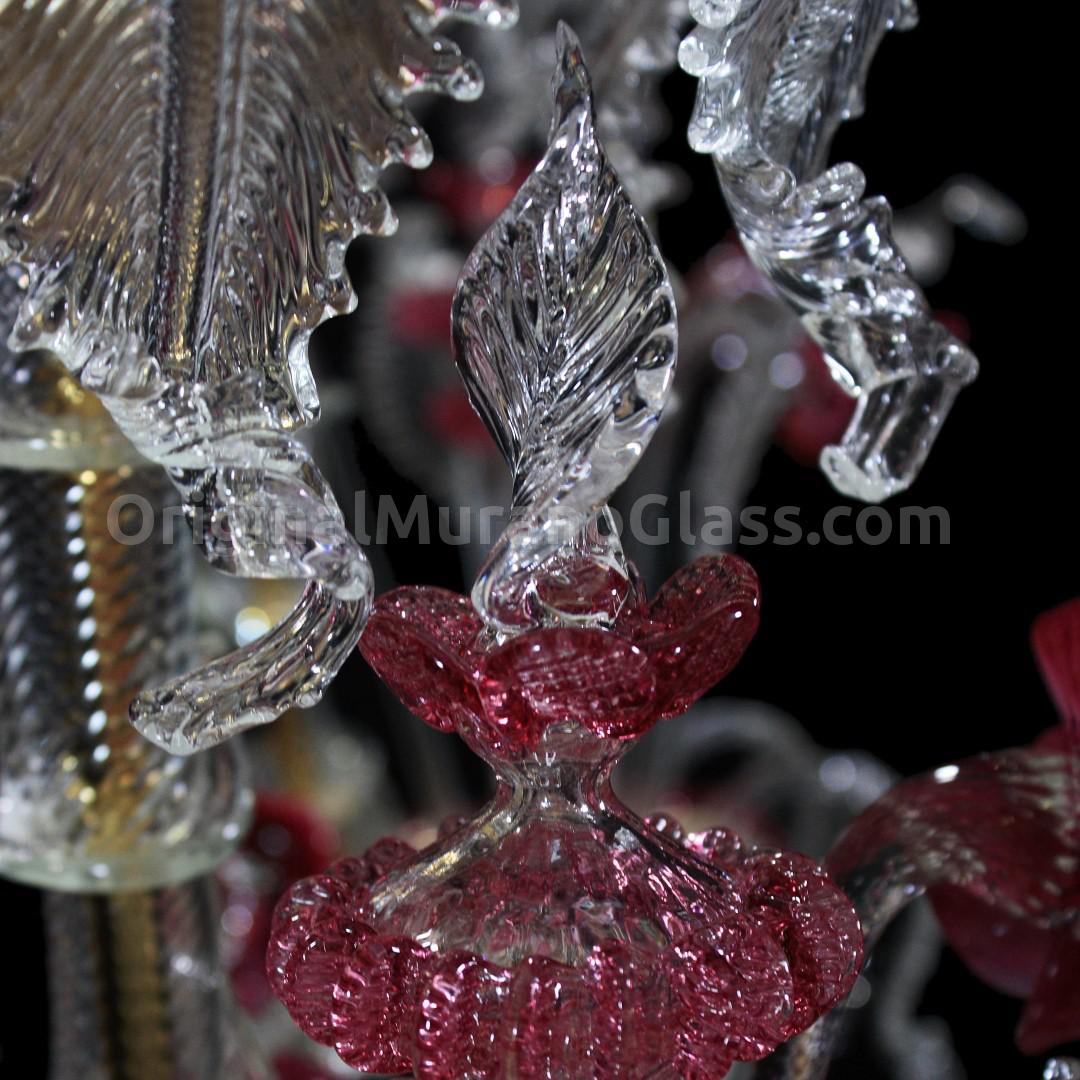 Rezzonico chandelier 9 lights in artistic glass crystal color with ruby trim, glass paste ruby.