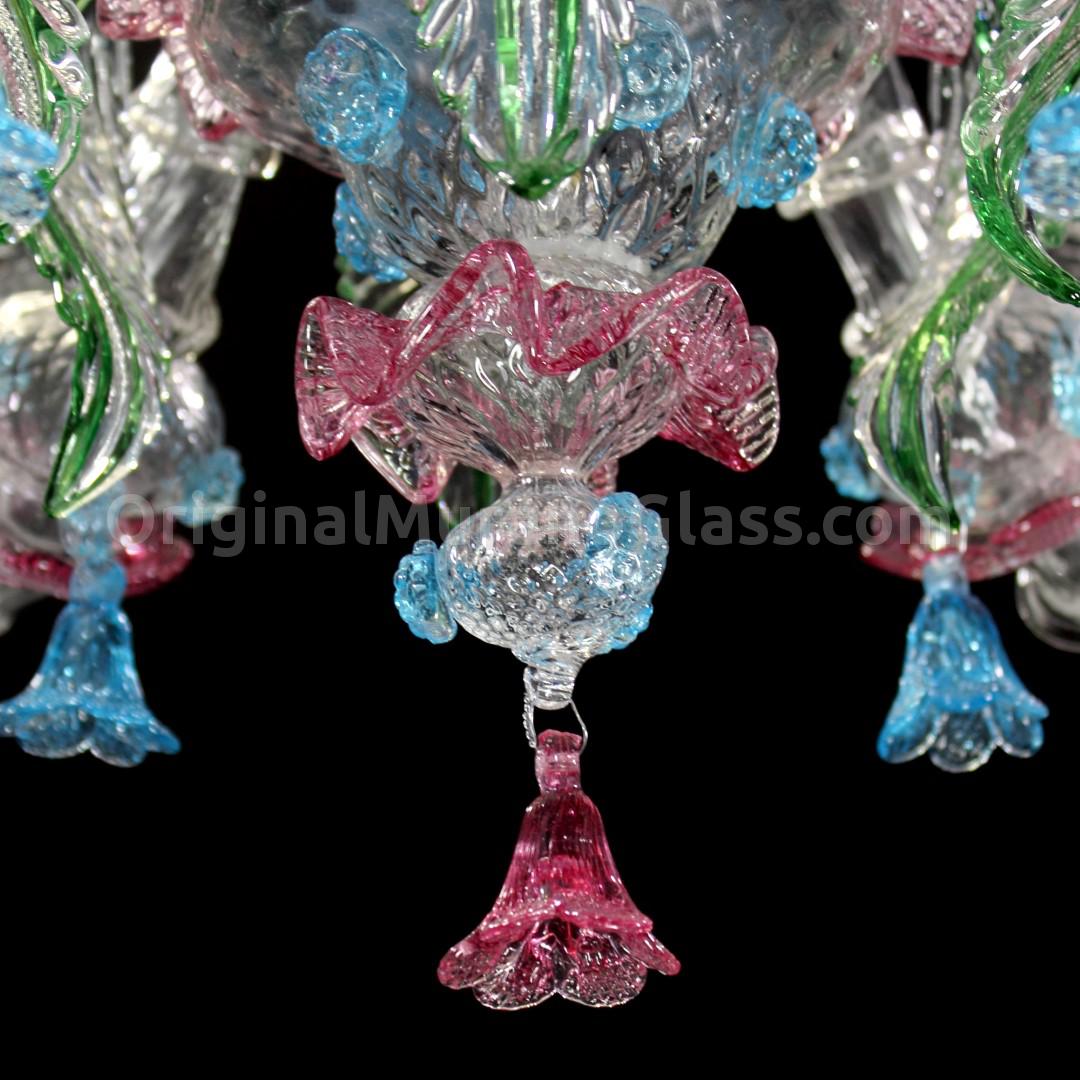 Chandelier handmade according with the old Murano glass tradition, handcrafted in colored glass.