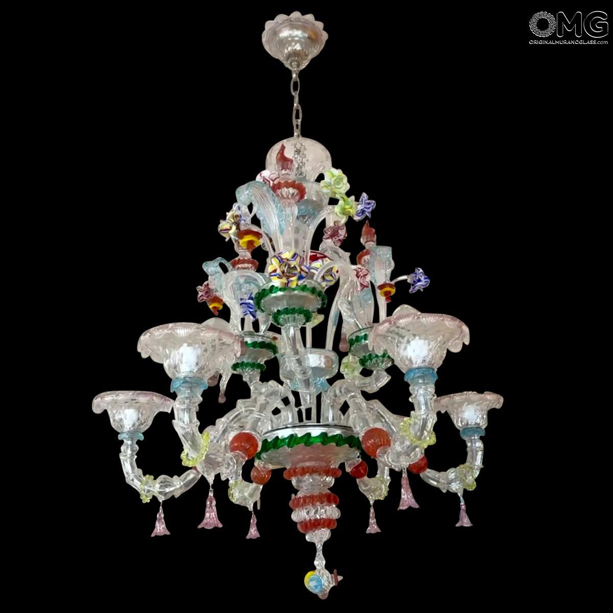 Venetian Chandelier Rezzonico and details in various glass colors.