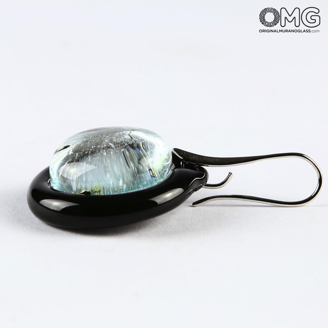 Earrings - circular submerged glass white - Original Murano Glass OMG