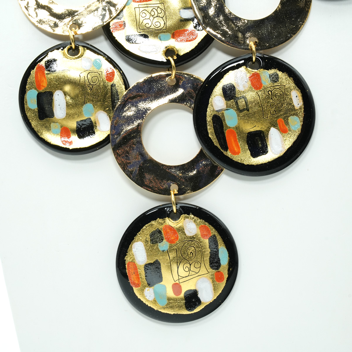 Such a nice design necklace for elegnat woman. The jewellery are handmade in lamp working technique then painted with gold paint. Very light weight, so you can wear it whenever you want. Perfect necklace for an exclusive gala event.