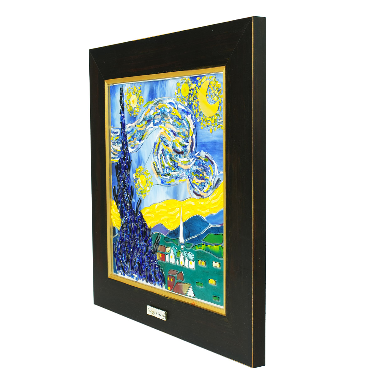 Stunning canvas tribute to the artist Van Gogh, a must have for the art lovers. The art work is designed, realized and assempled by our artisans and glass masters with attention of the details. Available in two colors=> White Frame - Black frame.