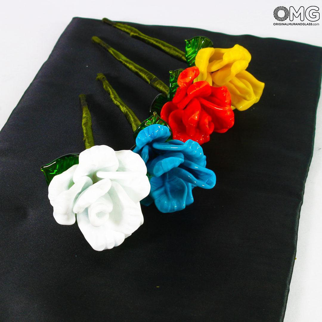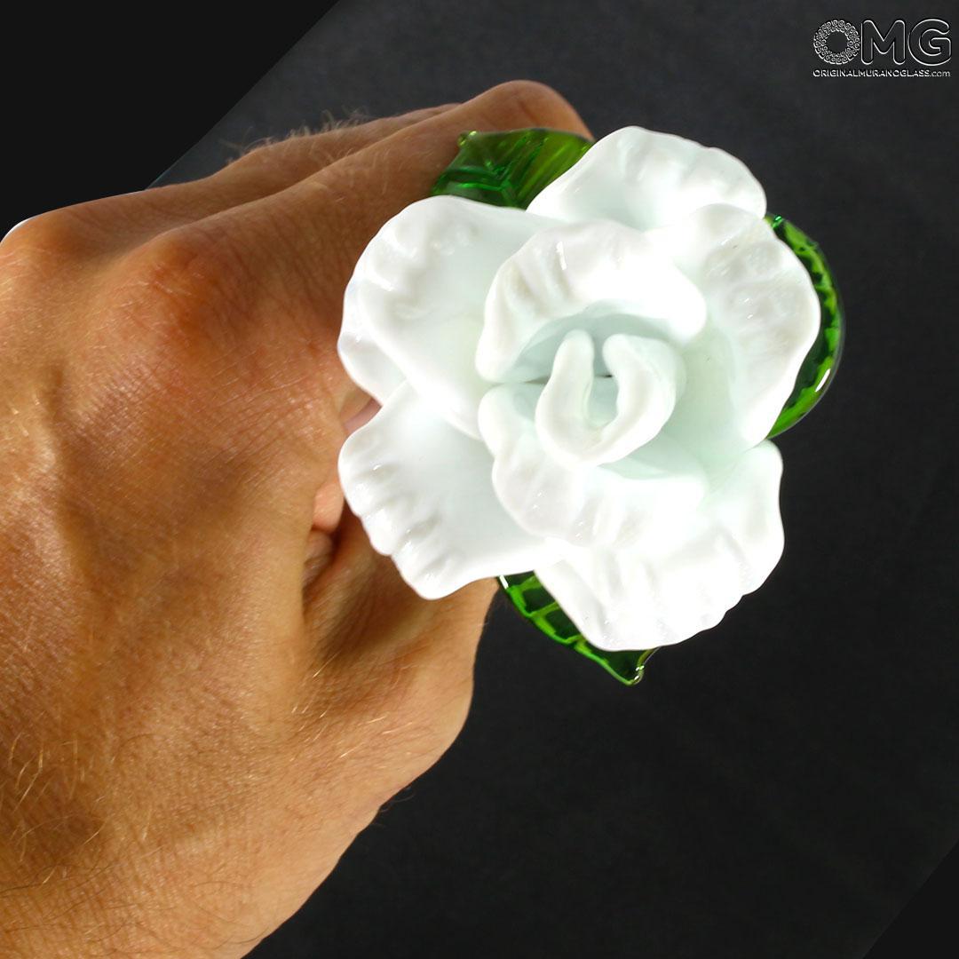 Fleur de rose - Blanche - Verre de Murano original OMG