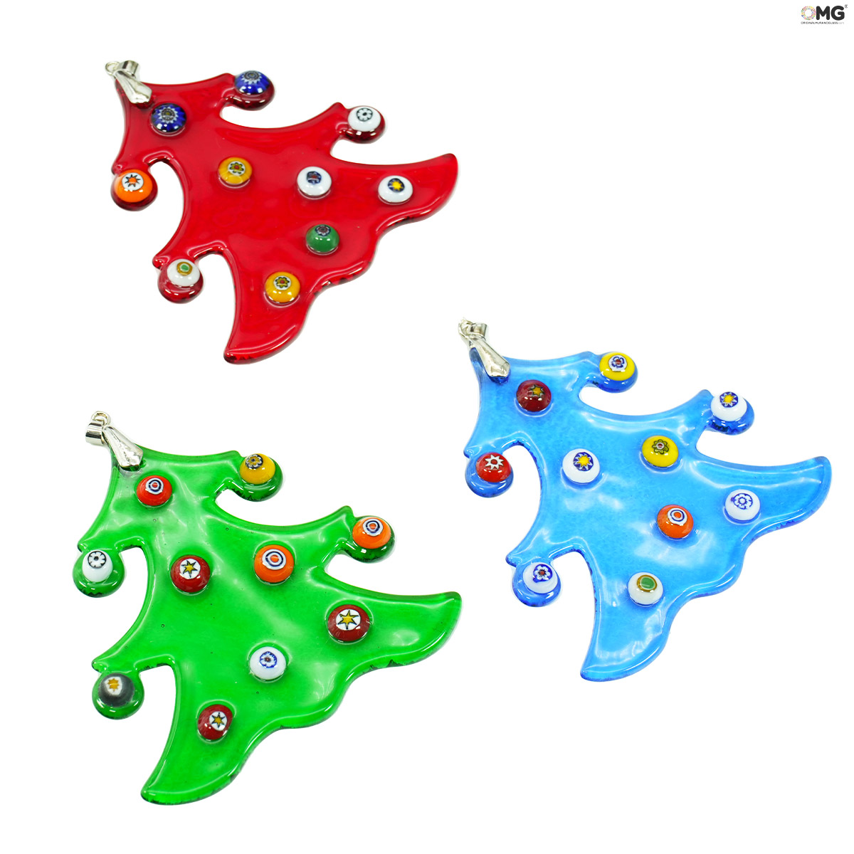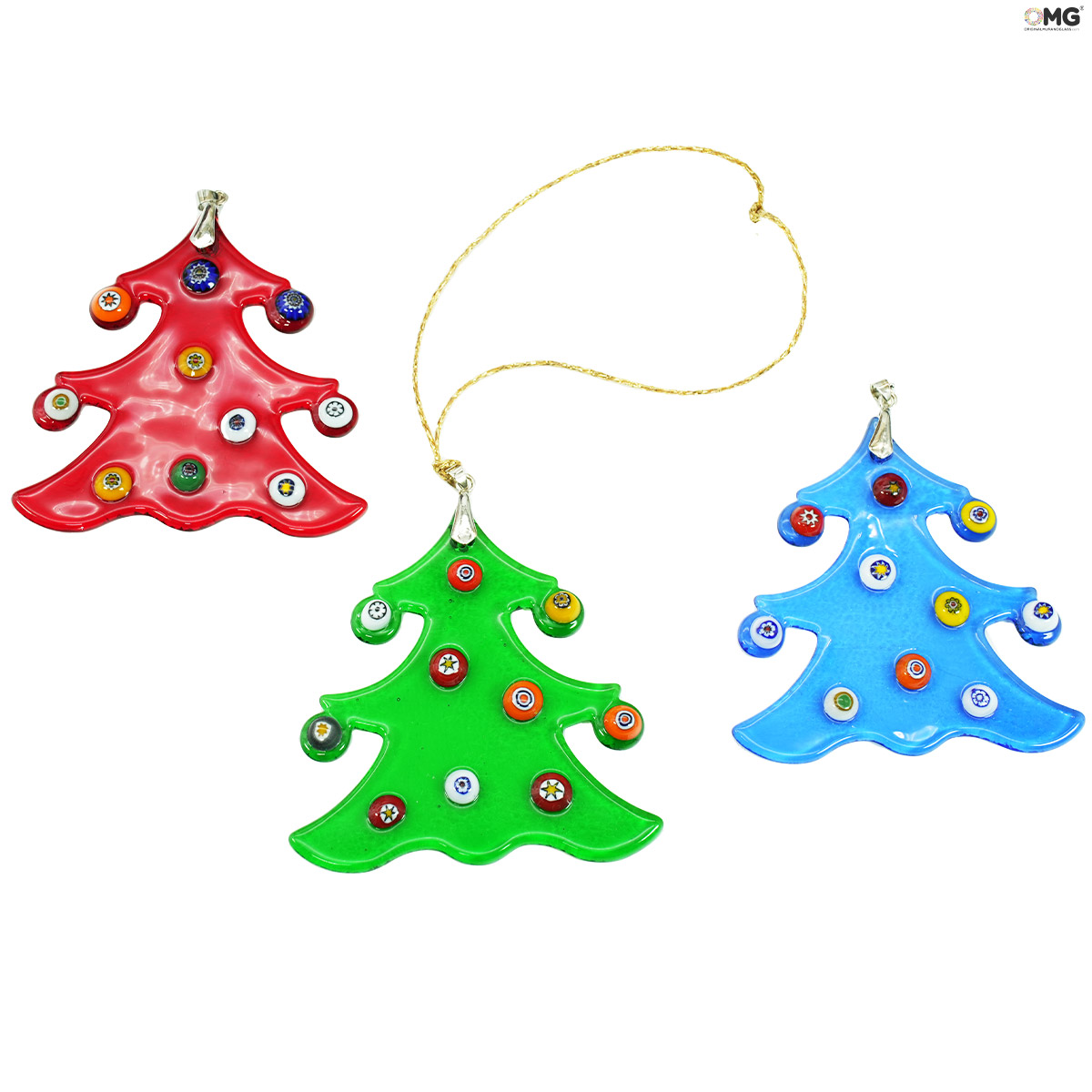 Sapins de Noël décoratifs - Ensemble Millefiori de 3 pièces - Verre de Murano original OMG