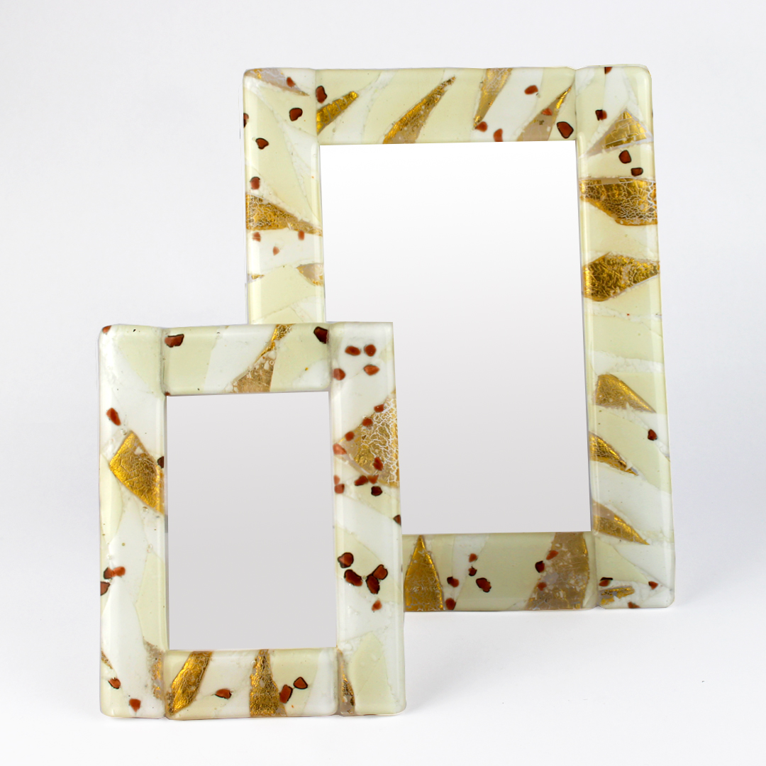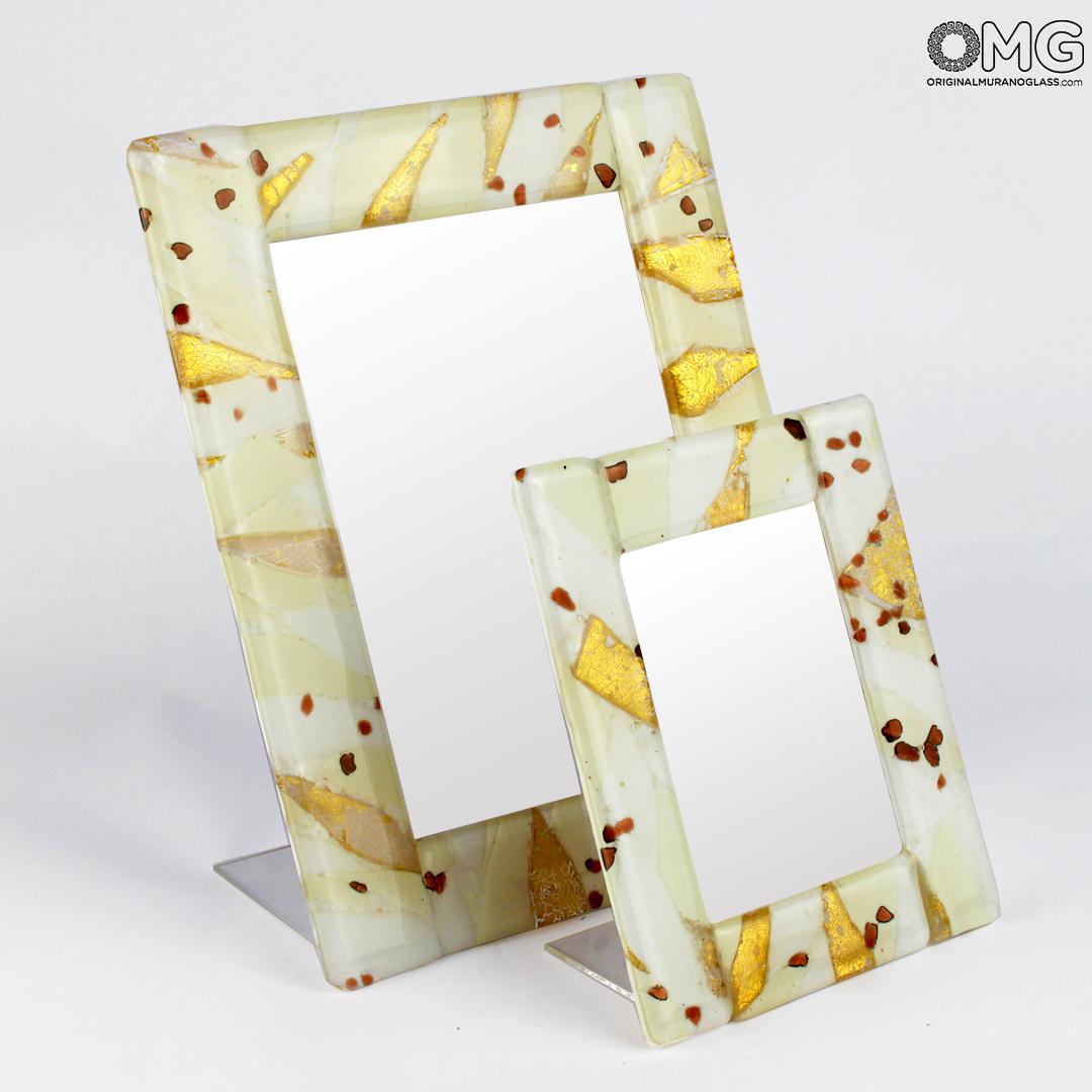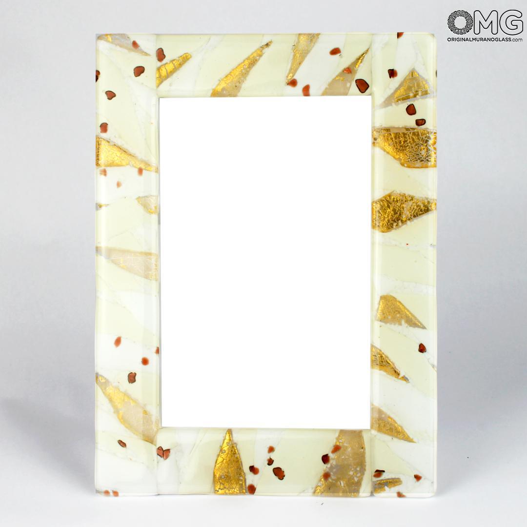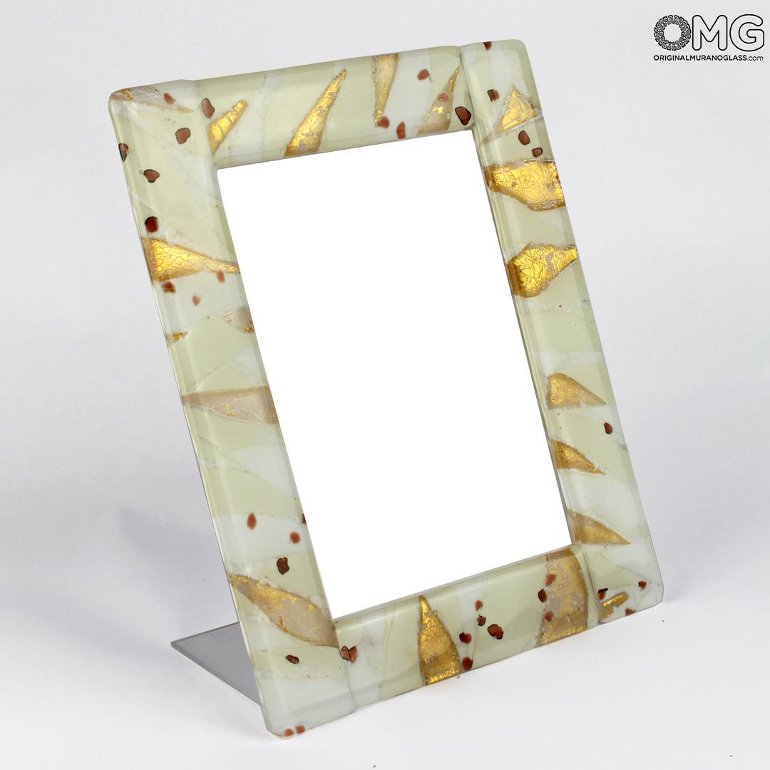 Cadre photo réalisé selon la technique de la fusion du verre. Un cadre à la texture élégante, rehaussé d'une feuille d'or véritable 24 carats.