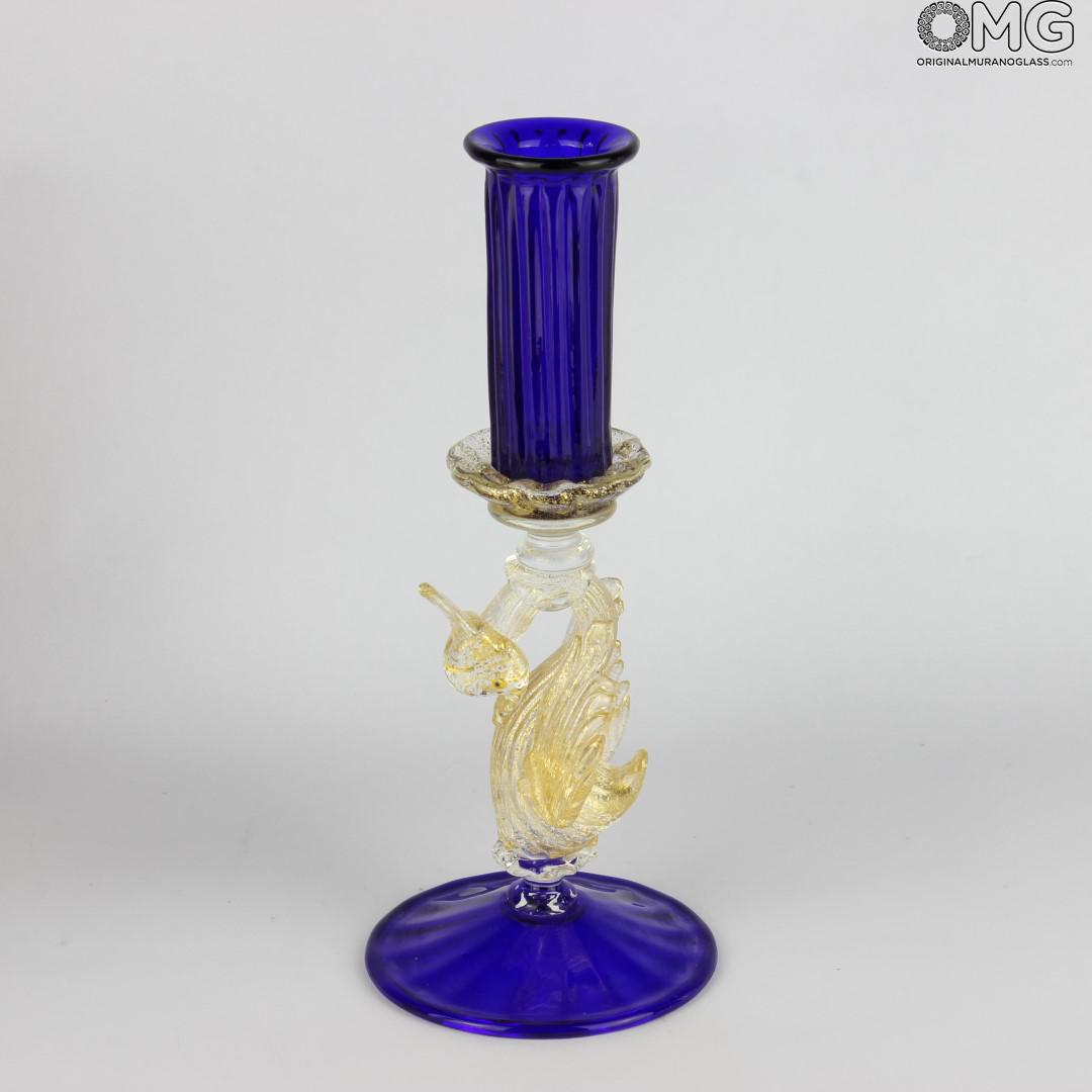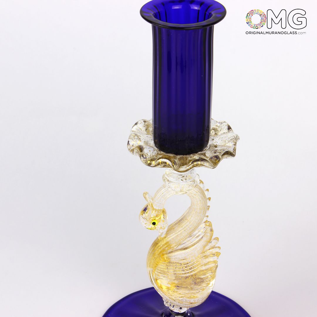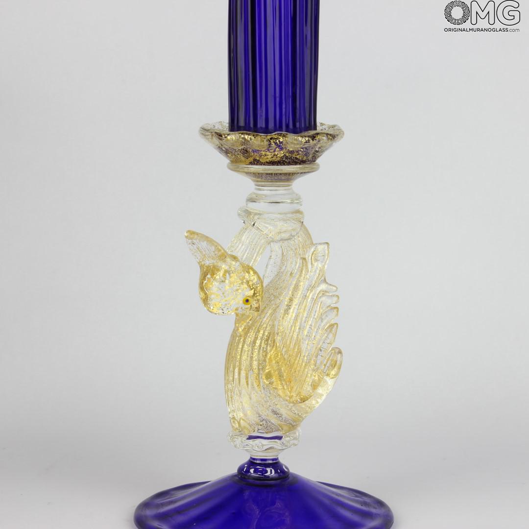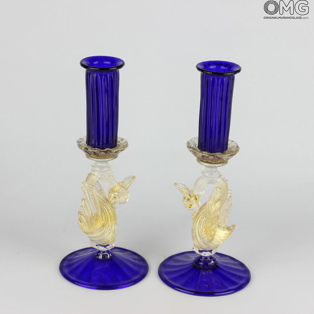Set di 2 Porta Candela Blu Classico Veneziano - Vetro di Murano
