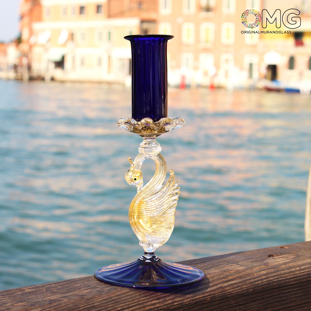 Porta candela dettagliato fatto a mano utilizzando la tecnica di lavorazione tradizionale del vetro di Murano.