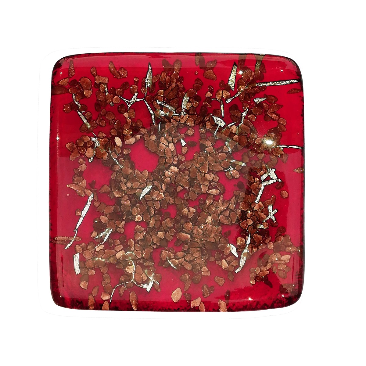 Piatto colorato realizzato a mano con la tecnica della vetrofusione in vetro di Murano originale con decori avventurina ed argento, disponibile in tre colori: rosso, ambra, blu. Simpatico centrotavola per decorare la casa, la cucina, il soggiorno, l'ufficio, un tavolo, prezioso per contenere caramelle, o qualsiasi piccolo oggetto che si ha in tasca vicino all'ingresso di casa, come chiavi dell'auto o altro.