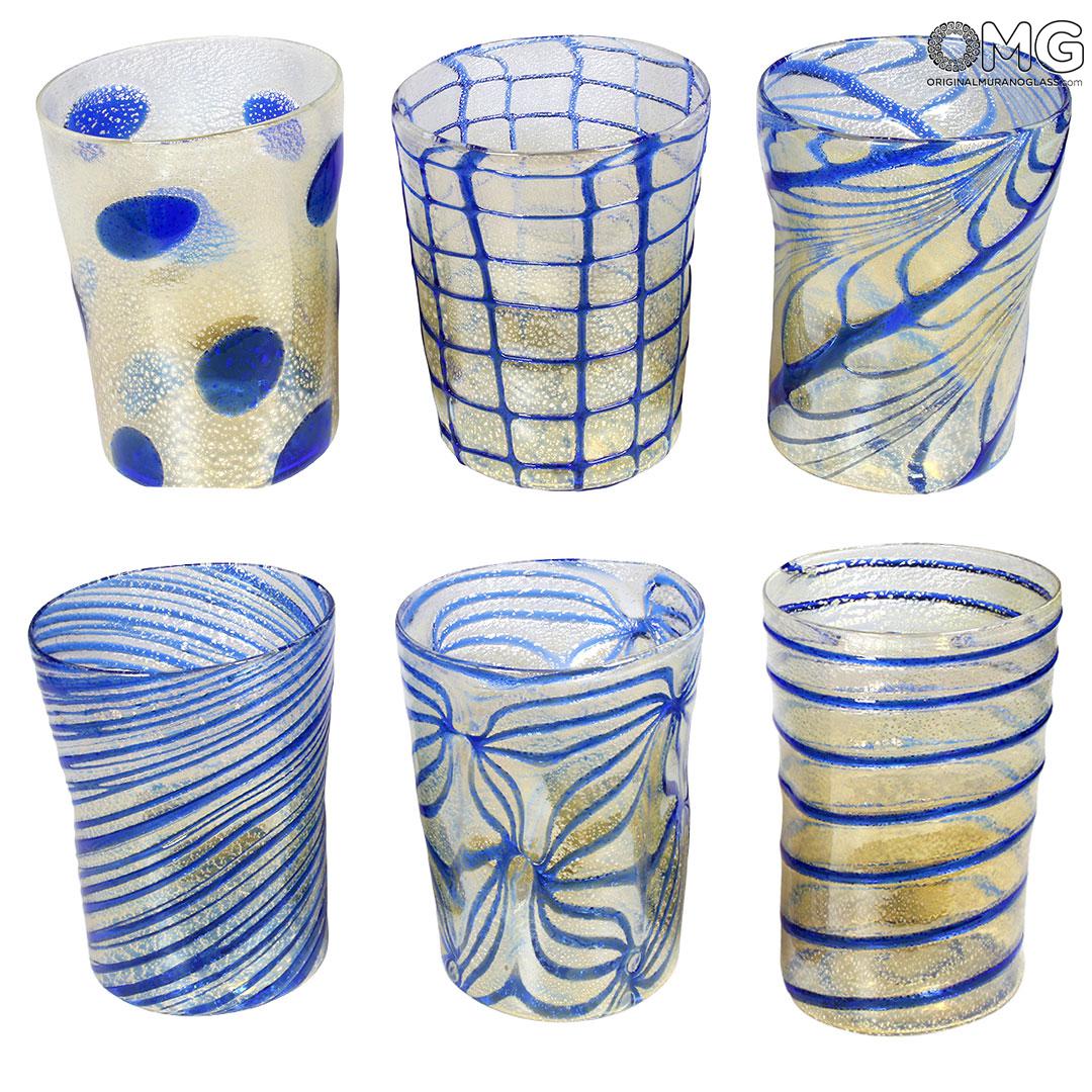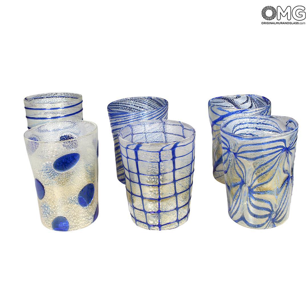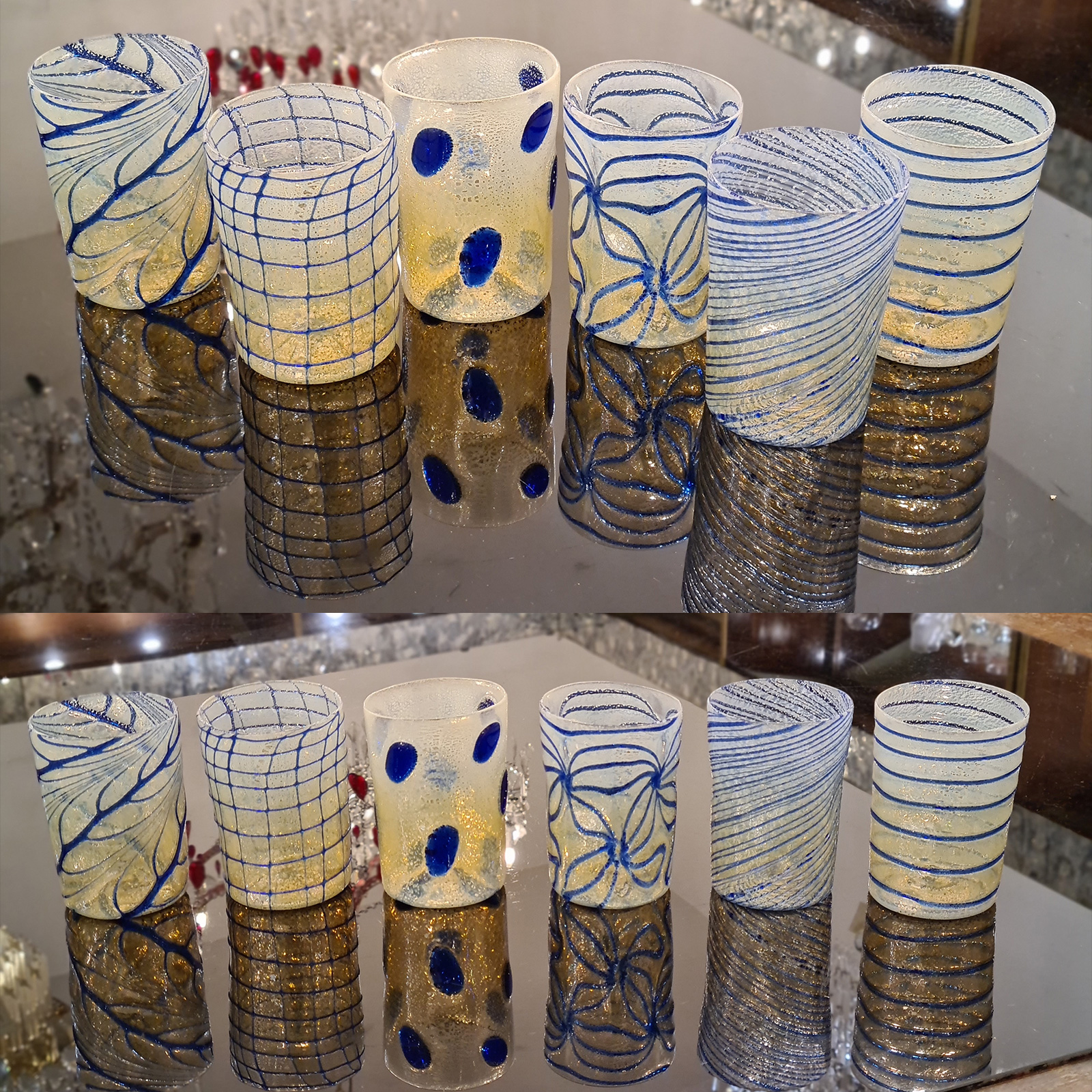 Set di 6 bicchieri completamente soffiati e lavorati a mano da famosi maestri vetrai muranesi con puro argento.