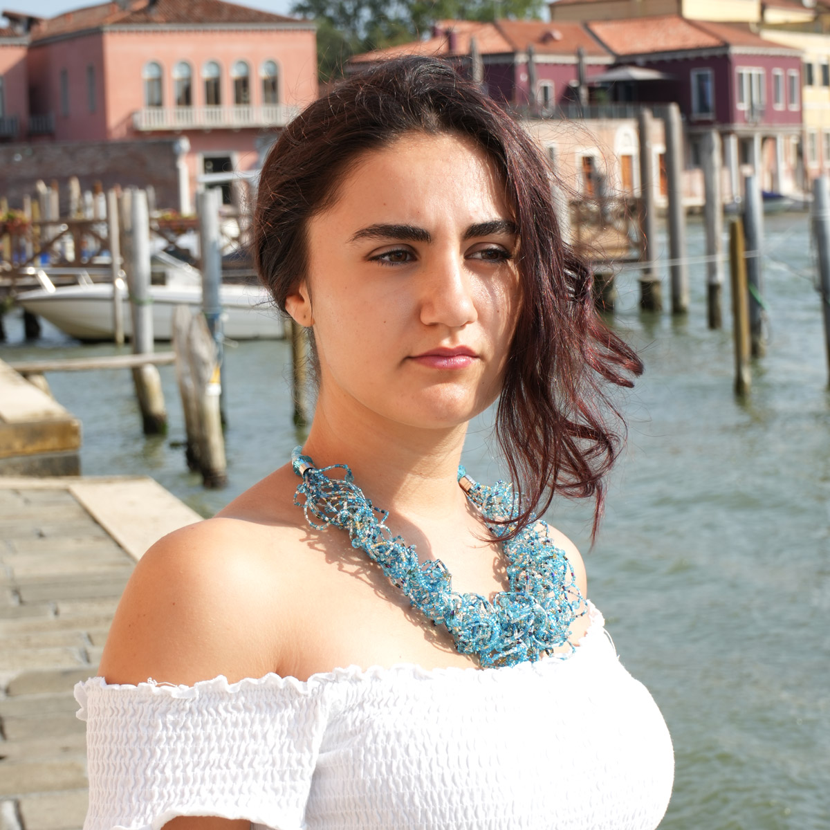 Eleva il tuo stile con questa splendida collana in vetro di Murano, realizzata artigianalmente utilizzando la tradizionale tecnica delle conterie. Ogni perla è creata singolarmente a Murano, Italia, riflettendo secoli di maestria artigianale e un ricco patrimonio culturale. Questa collana presenta una gamma di colori vivaci e motivi intricati, catturando l'essenza dell'eleganza veneziana. Le perle di vetro sono accuratamente infilate insieme per creare un pezzo unico, senza tempo e versatile, perfetto per ogni occasione. Che tu stia preparando un outfit per un evento speciale o aggiungendo un tocco di raffinatezza al tuo look quotidiano, questa collana in vetro di Murano saprà sicuramente impressionare. Possiedi un pezzo di autentico artigianato italiano con questa collana di perle in vetro di Murano, un vero e proprio omaggio all'arte e alla tradizione dei maestri vetrai di Murano.