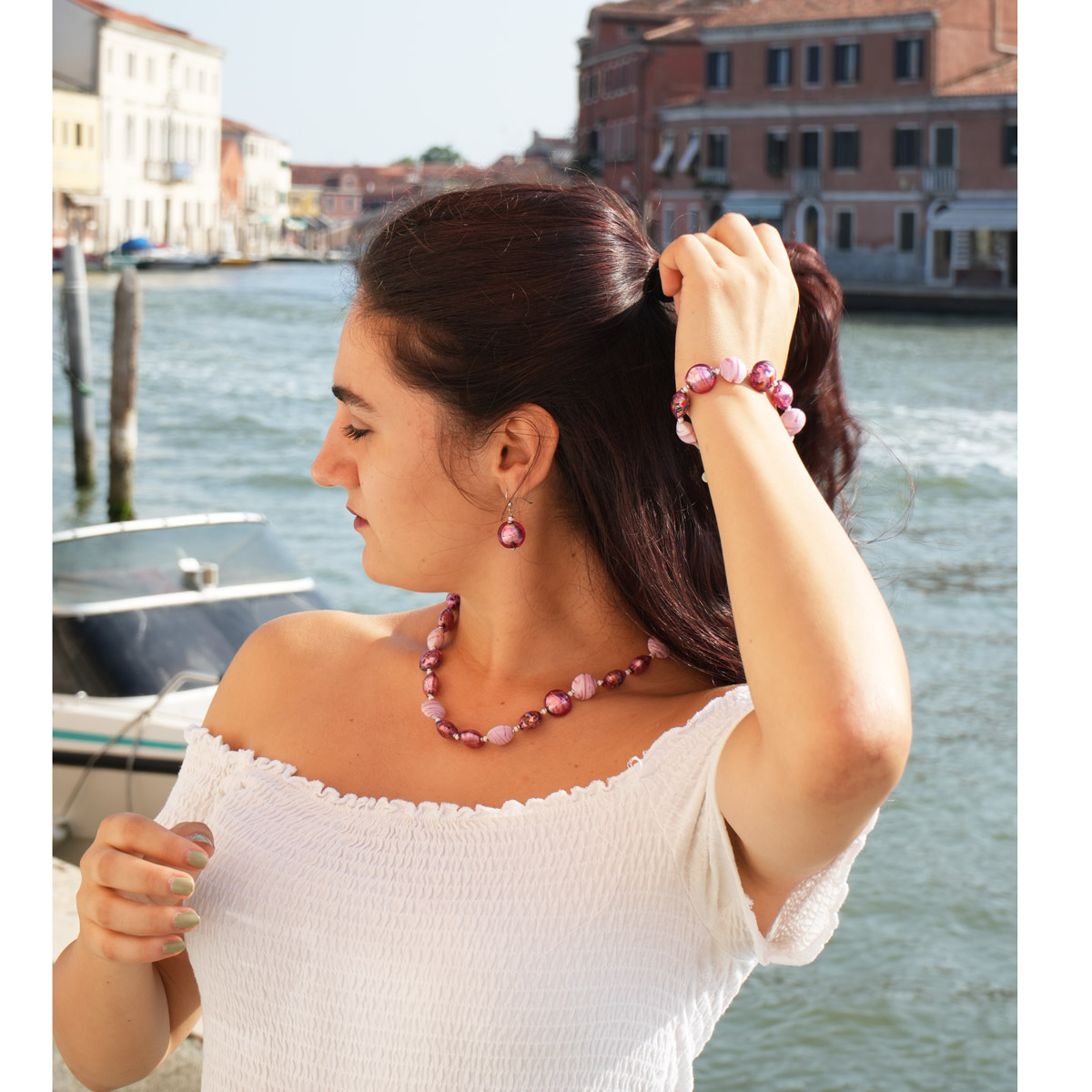 Parure Marlen - Perle con foglia argento - Rosa - Vetro di Murano