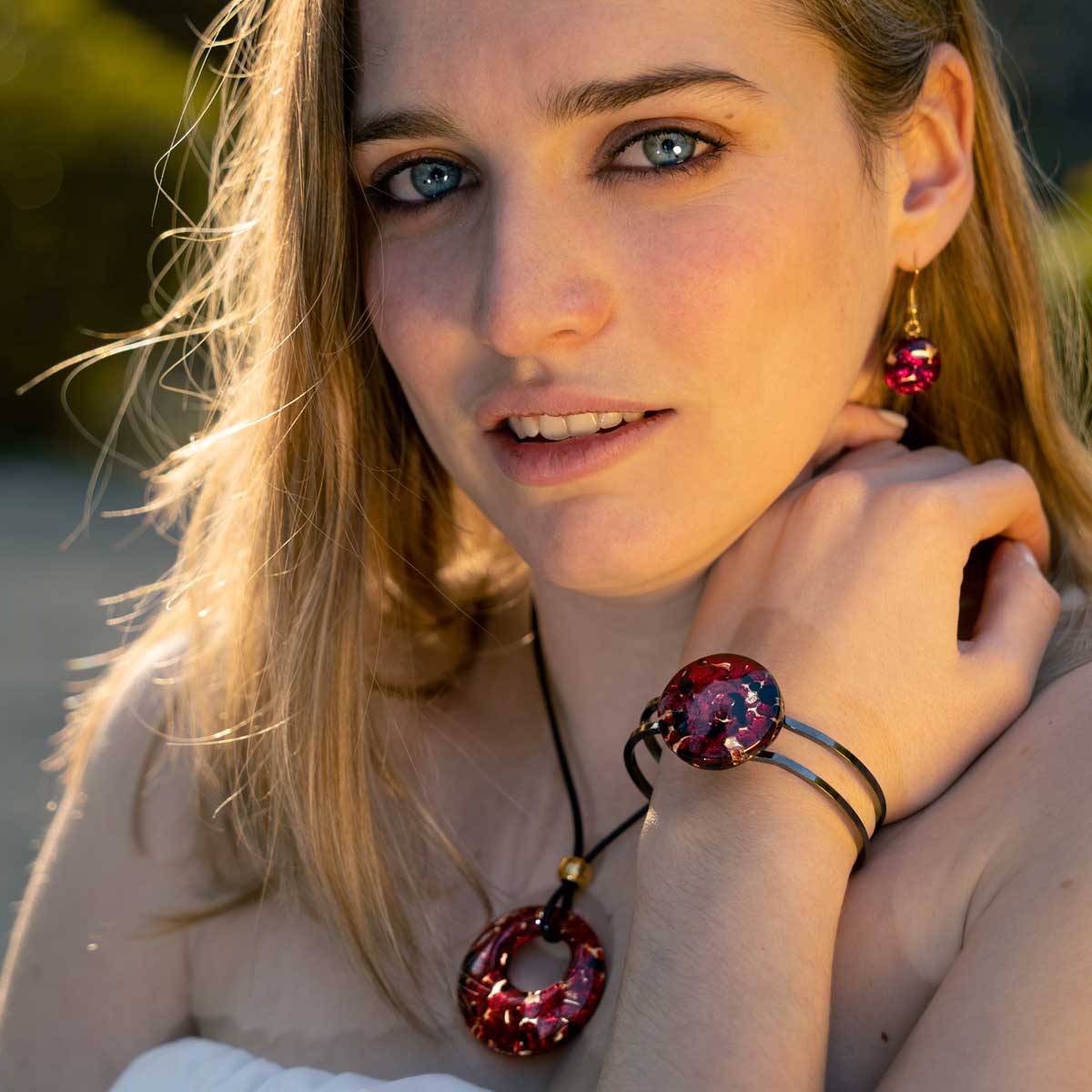 Parure in vetro di Murano realizzata a mano in vetro fusione con foglia d'oro.