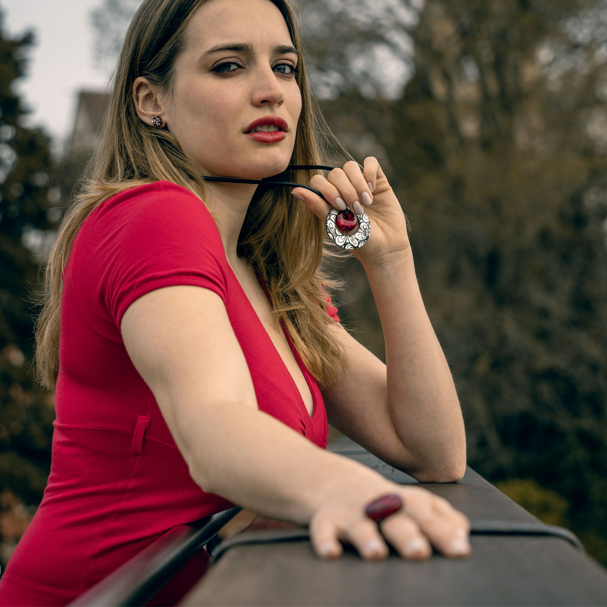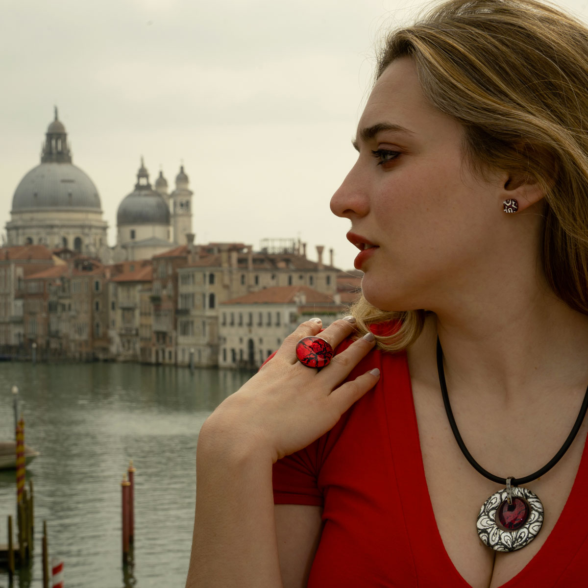 Orecchini Bottoni - Rosso Argento - Vetro di Murano Originale