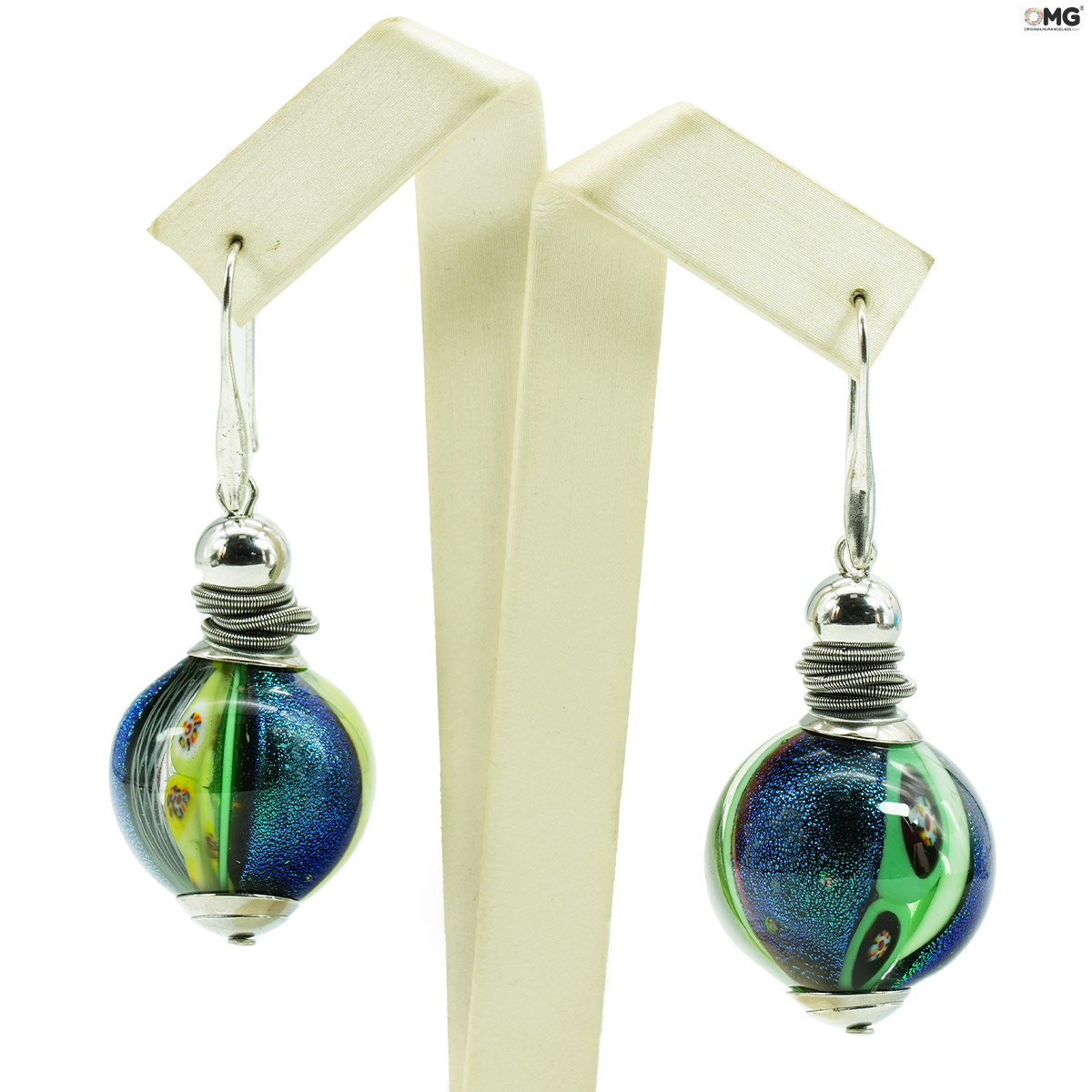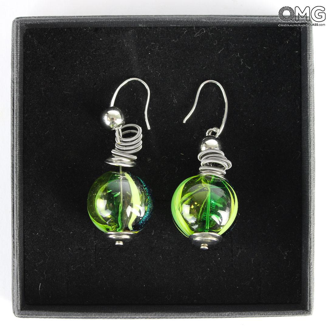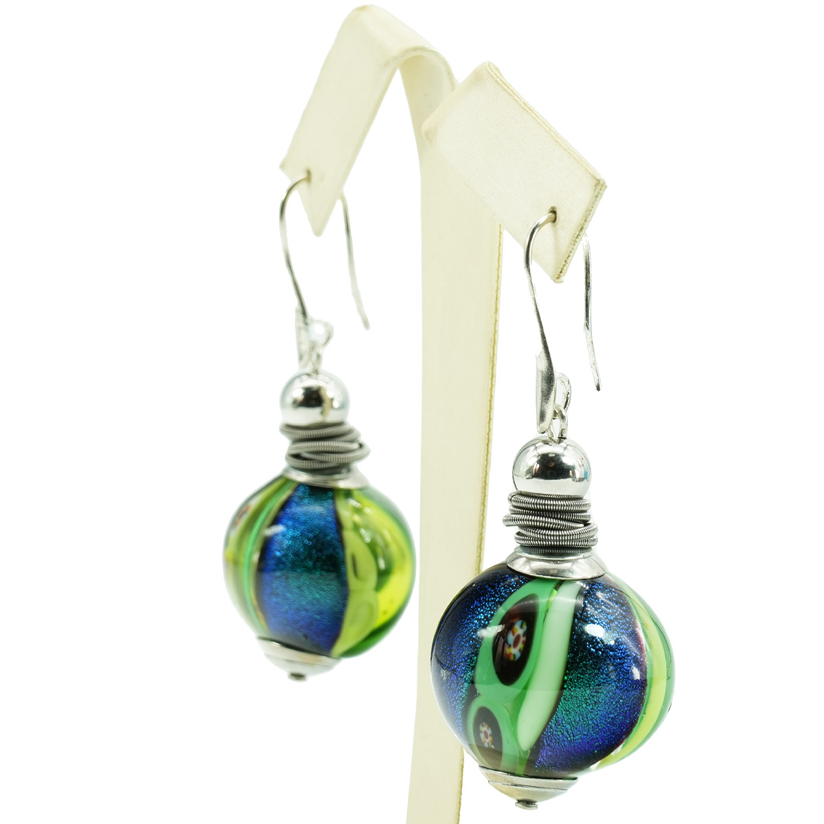 Orecchini in vetro di murano realizzati con la tecnica della lavorazione a lume.