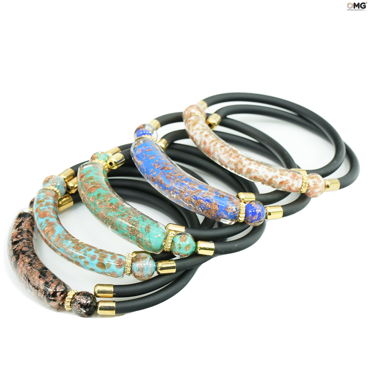 Bracciale Atena Nero - Perla lunga con Avventurina - Vetro di Murano Originale OMG