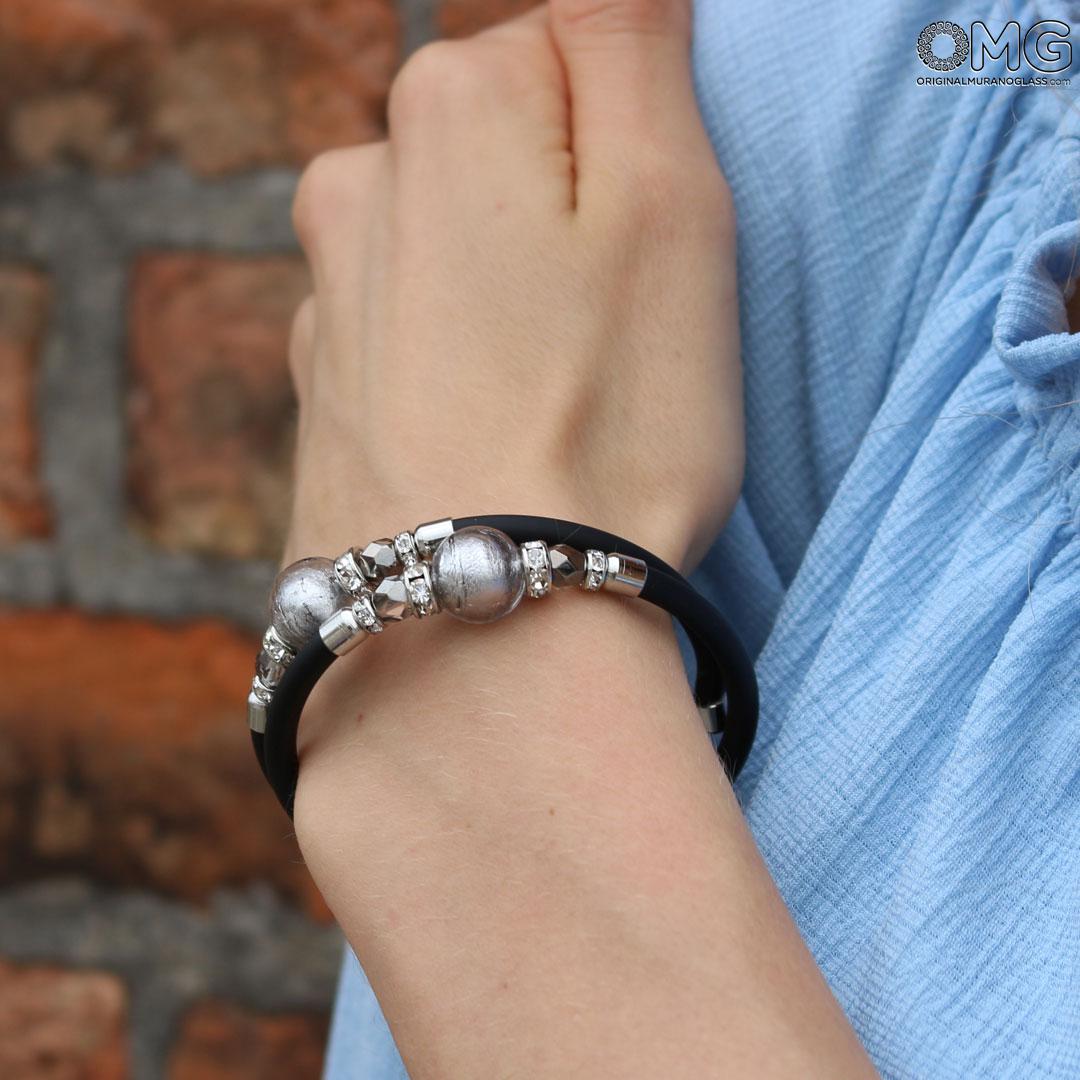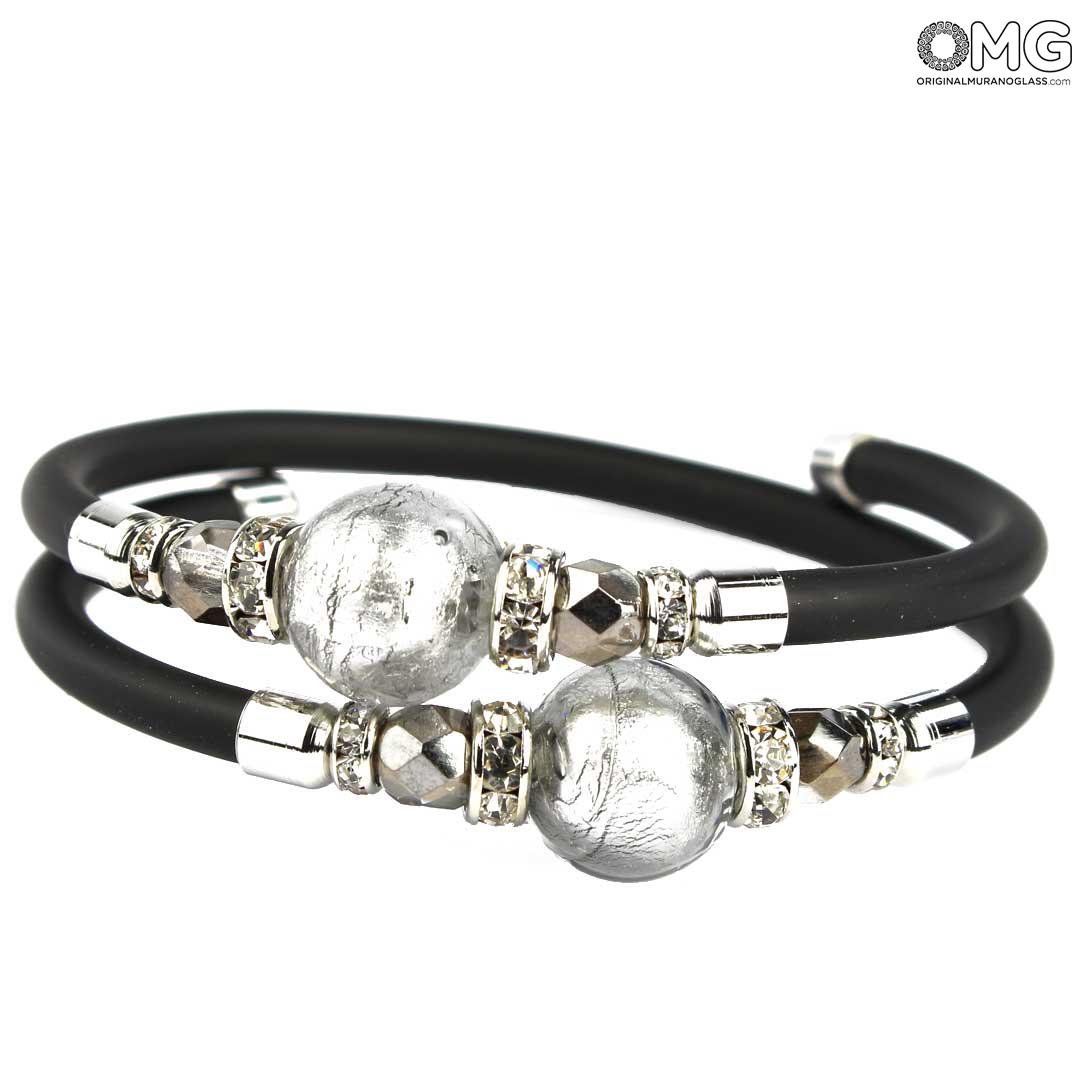 Bracciale Cometa Argento - Con foglia argento - Vetro di Murano Originale OMG