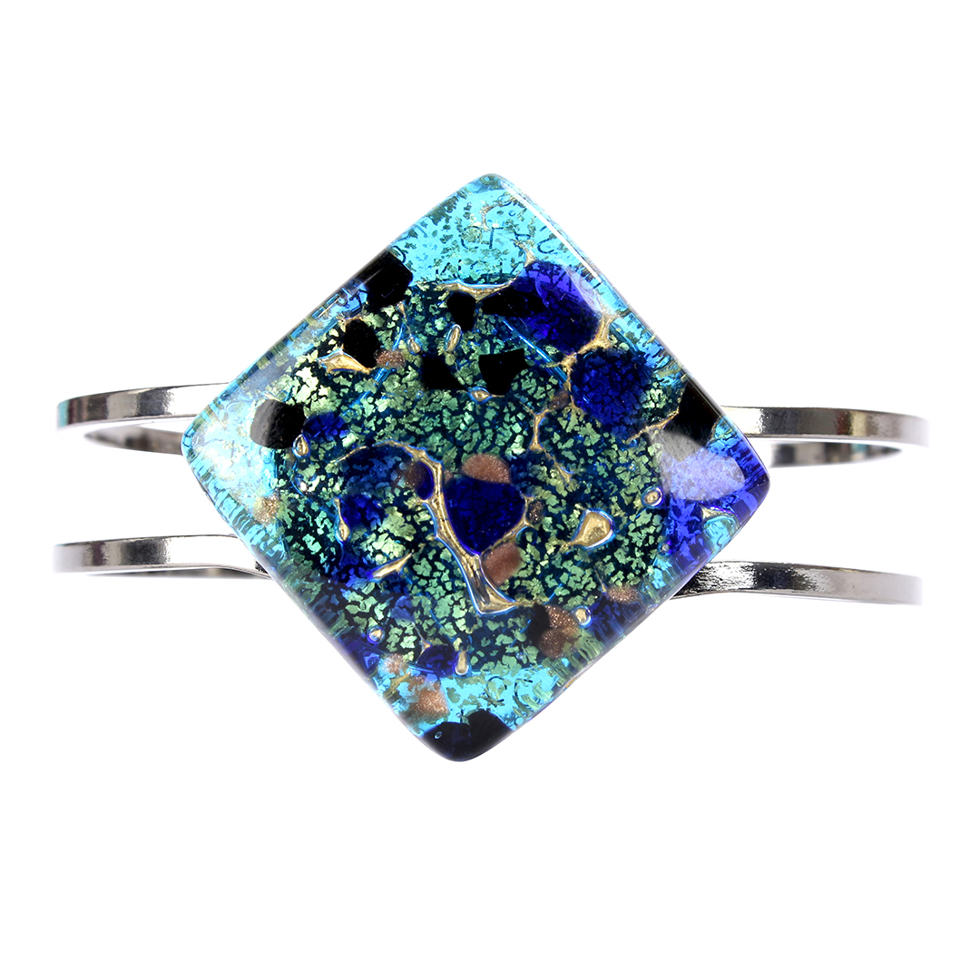 Bracciale con piastra realizzata in vetro fusione e rifinita a mano.
