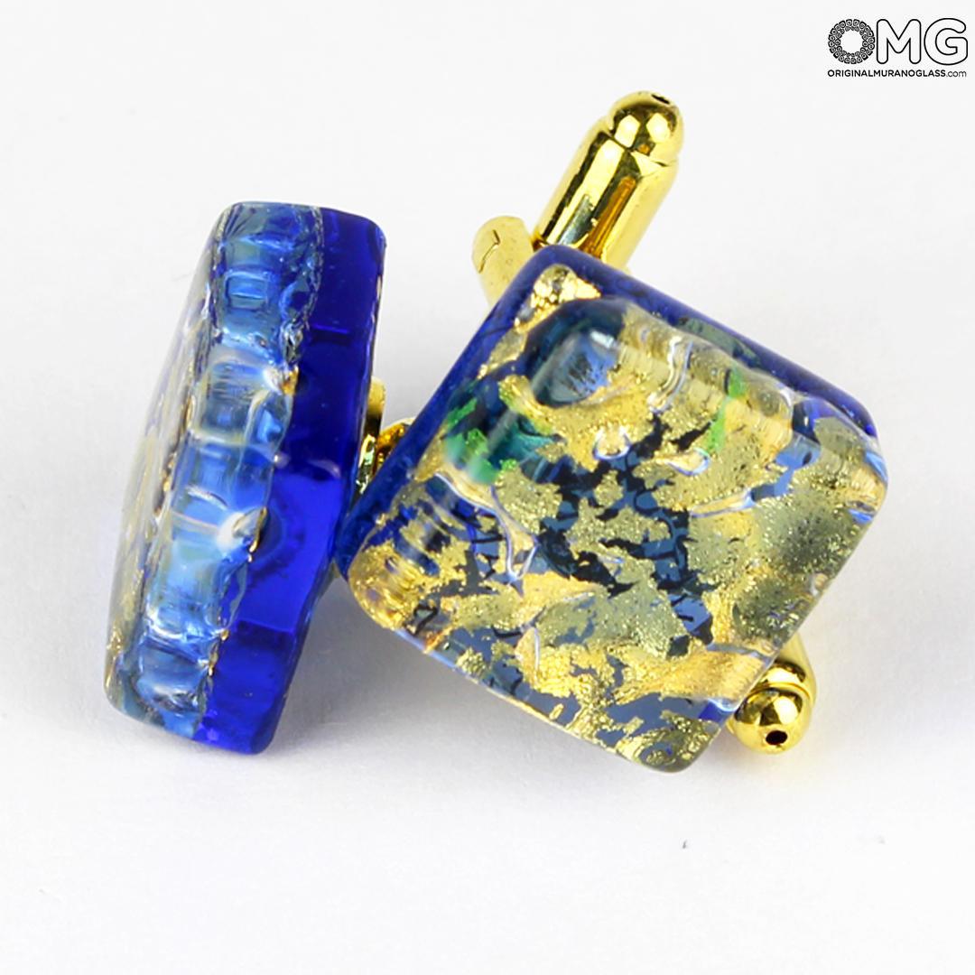 Élégants boutons de manchette réalisés selon la technique de la fusion du verre et de l'or fin. Fabriqués avec un grand souci du détail à partir de verre de Murano.