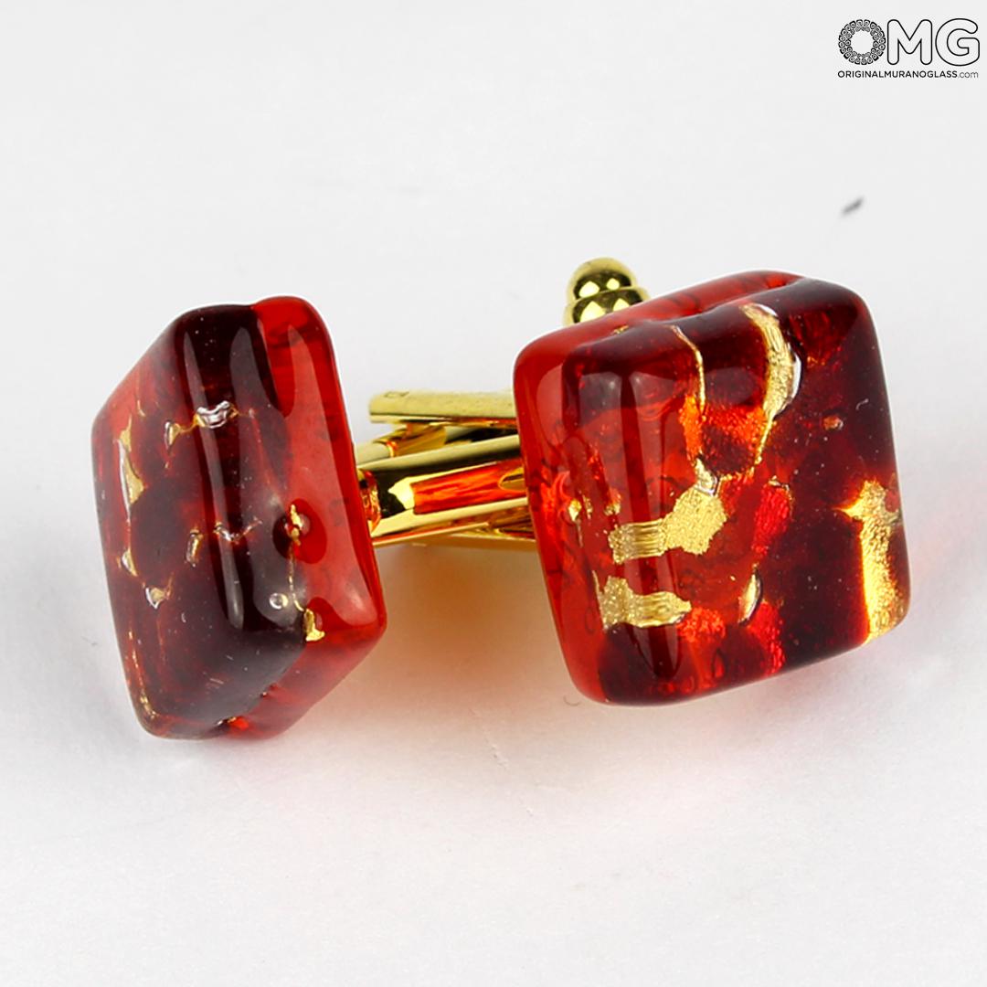Élégants boutons de manchette réalisés selon la technique de la fusion du verre et de l'or fin. Fabriqués avec un grand souci du détail à partir de verre de Murano.