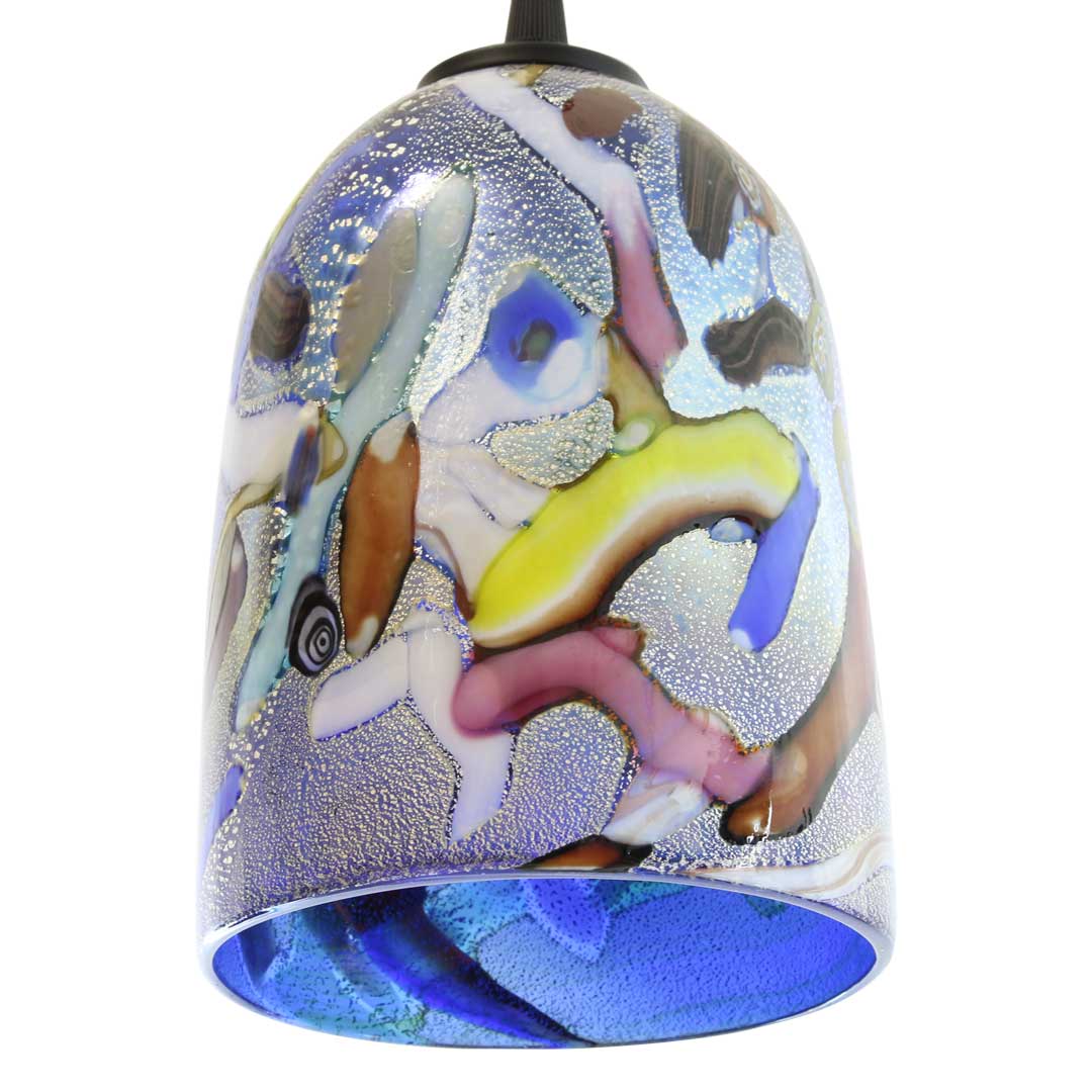 Lampada sospensione soffiata e lavorata a mano con vera foglia d'argento.
