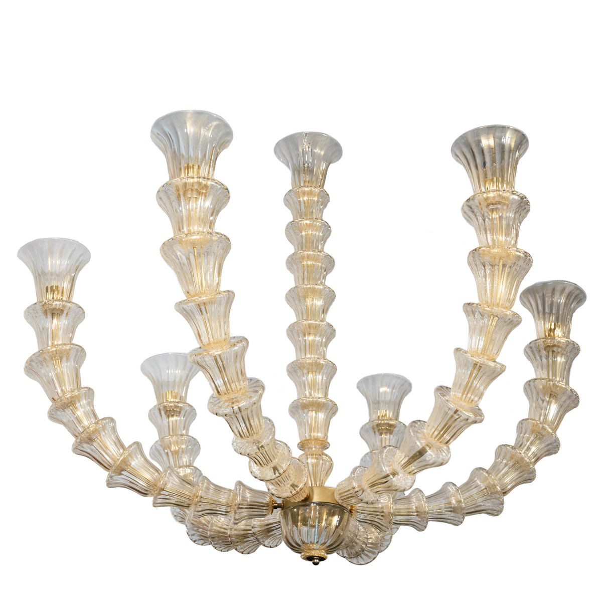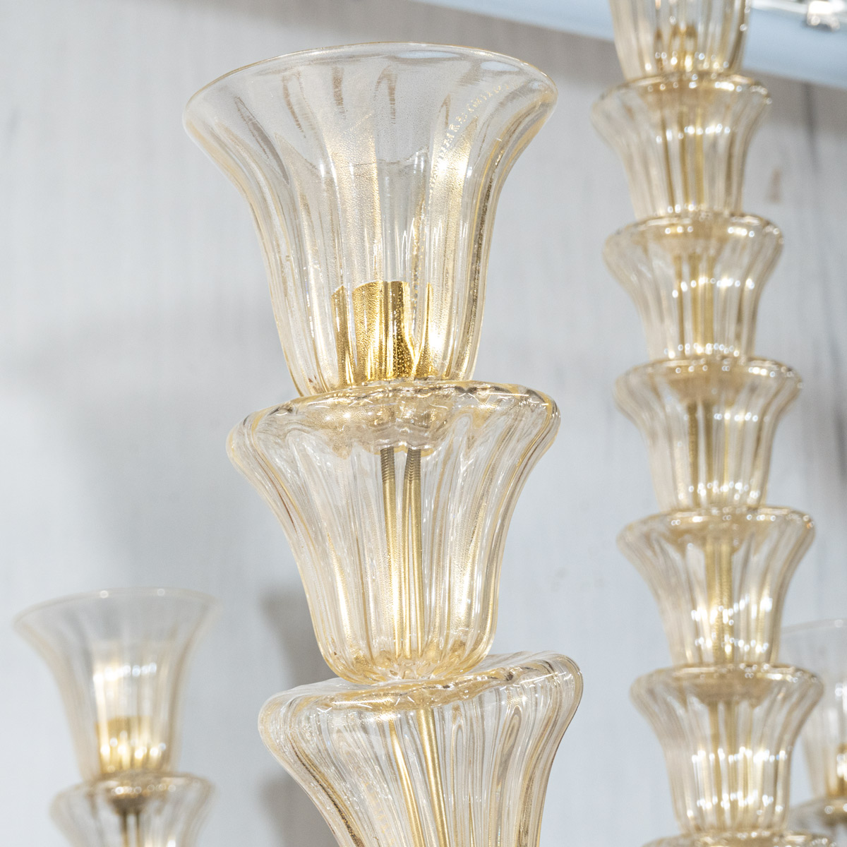 Lampadario veneziano vetro di Murano originale e tutto oro 24 carati, opera esclusiva per decorazioni di interni di lusso.