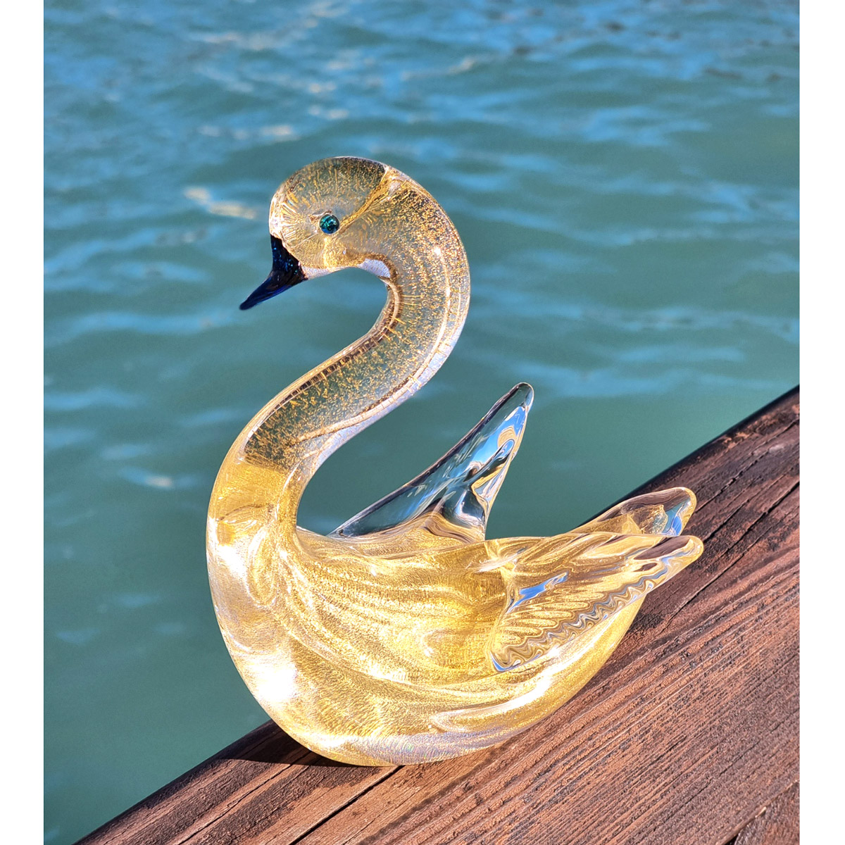 Cigno figurina - Con Oro Zecchino - Vetro di Murano Originale OMG