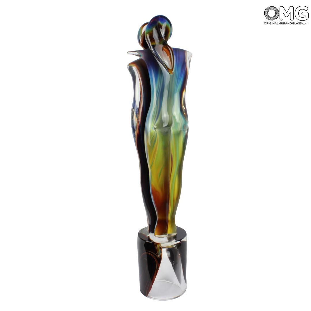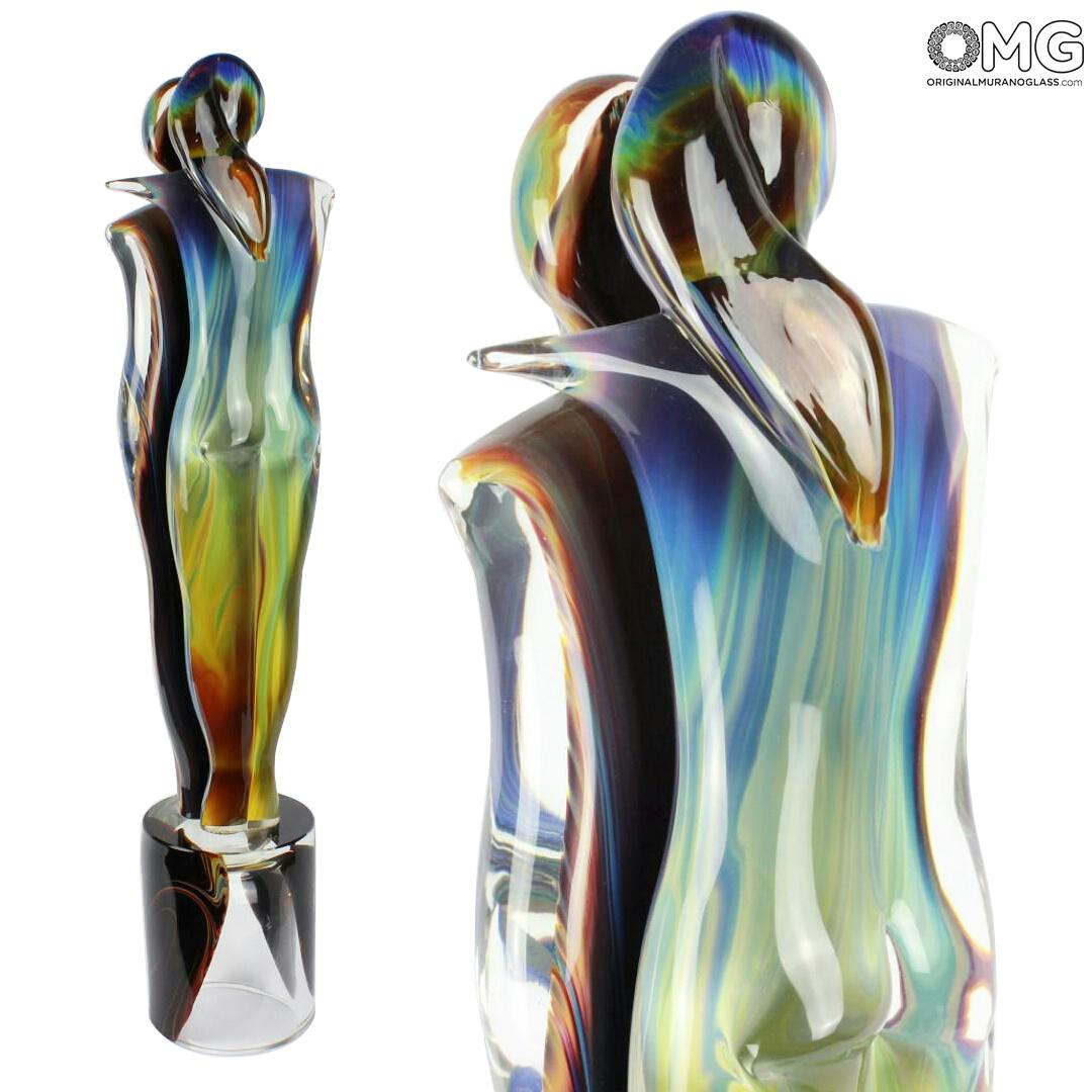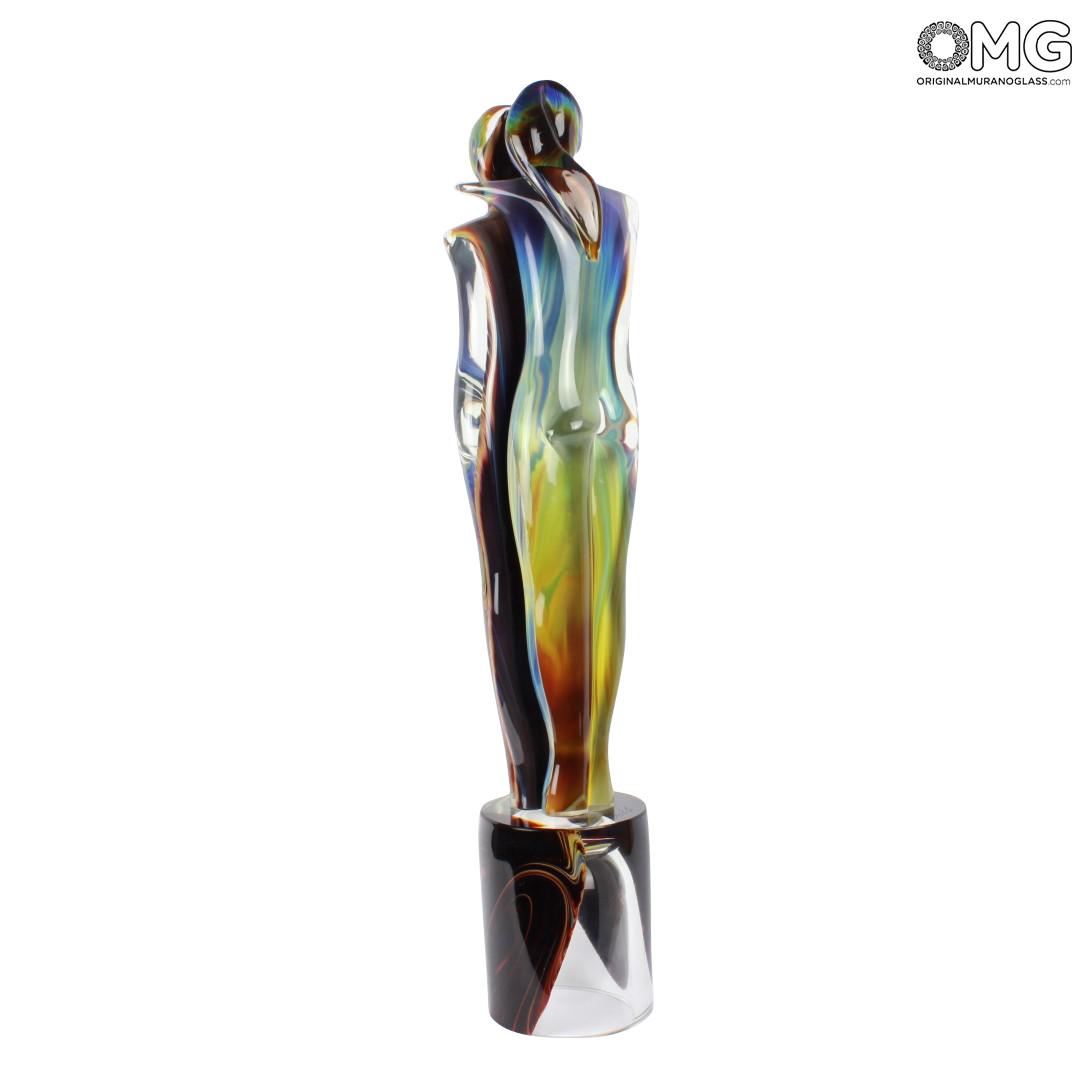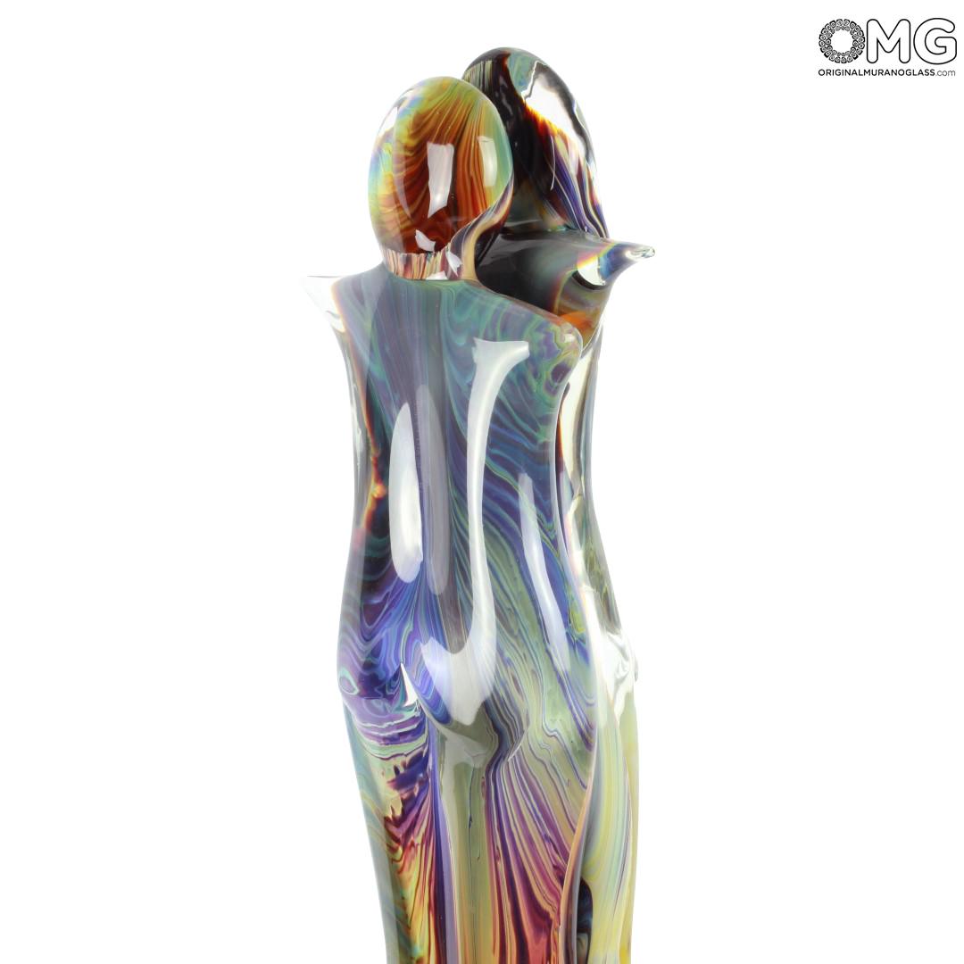 Scultura di grande valore artistico, di due amanti, realizzata a mano con la tecnica della modellazione a caldo. Il decoro è realizzato in vetro calcedonio. Molata e lucidata a mano.
