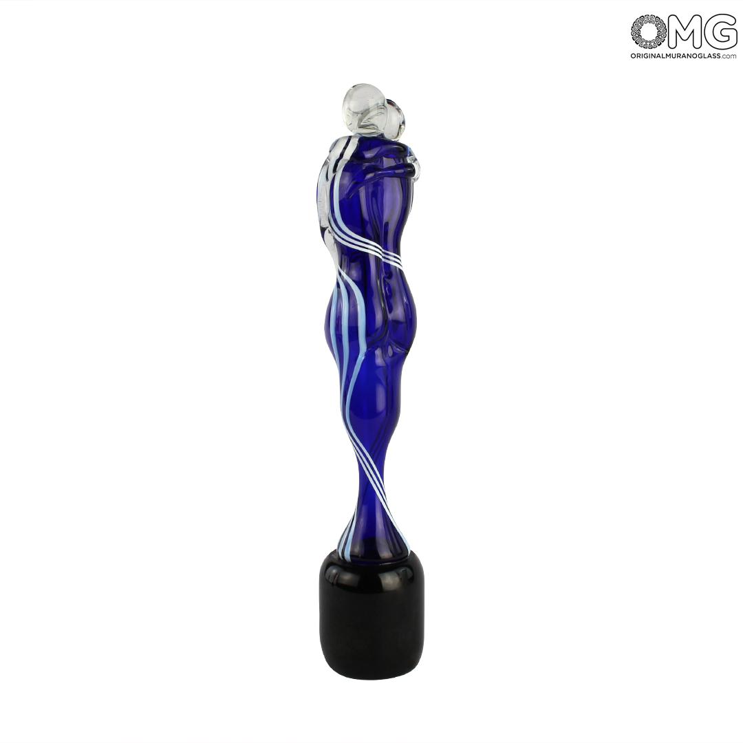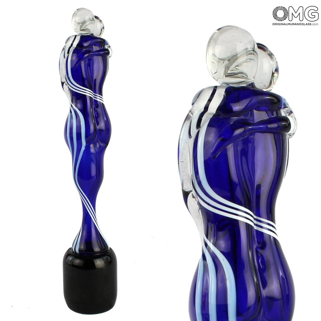 Cette sculpture représentant des amoureux, réalisée en verre de Murano bleu, est une œuvre d'art romantique fabriquée à la main à partir de verre fondu. Créée par nos artisans experts à Murano, cette œuvre d'art est une pièce unique alliant élégance et harmonie.