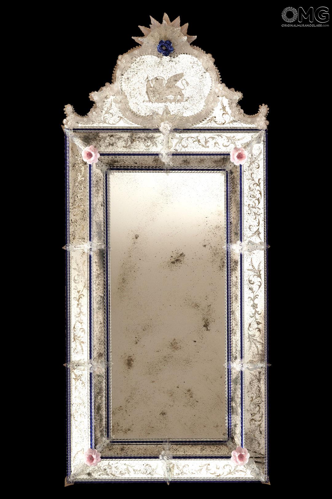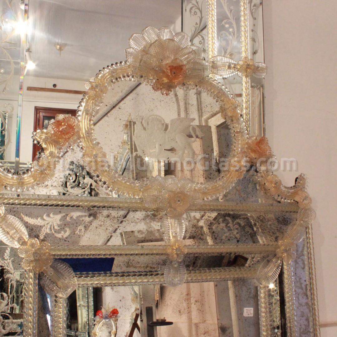 L'opera d'arte è disegnata e realizzata con cura nei dettagli dai nostri artigiani specchieri, dai maestri vetrai per gli abbellimenti in vetro di Murano, e falegnami.