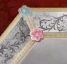 Lo specchio è composto da 20 fiori e canne a ricci, con vetro fuso con oro 24kt, e struttura in legno.