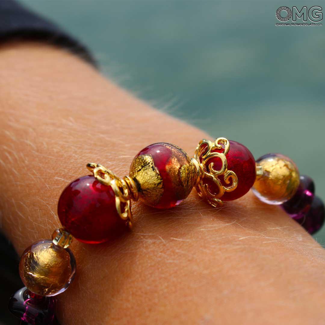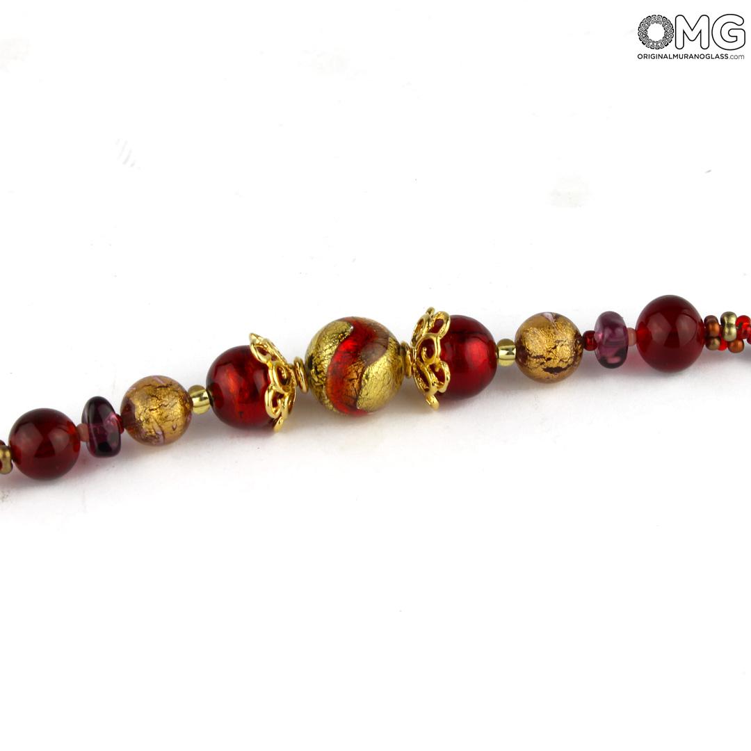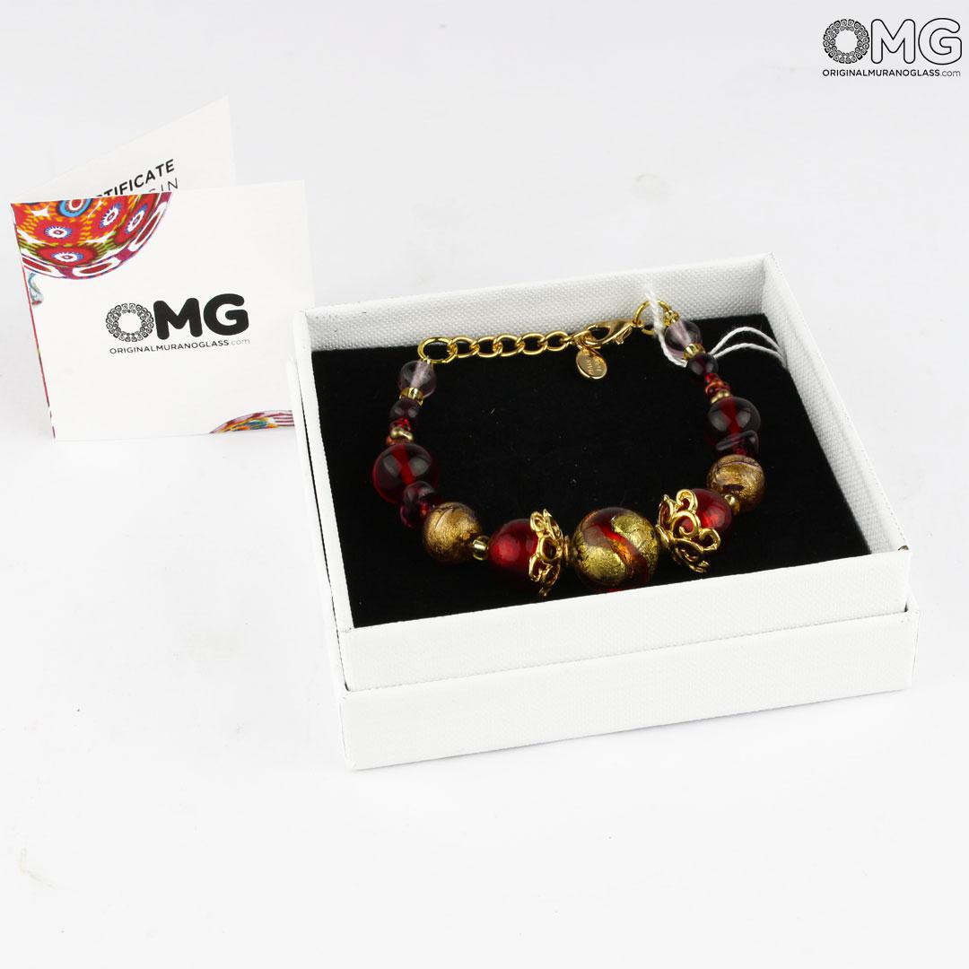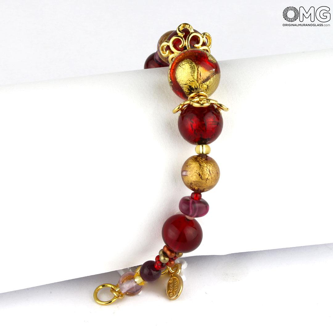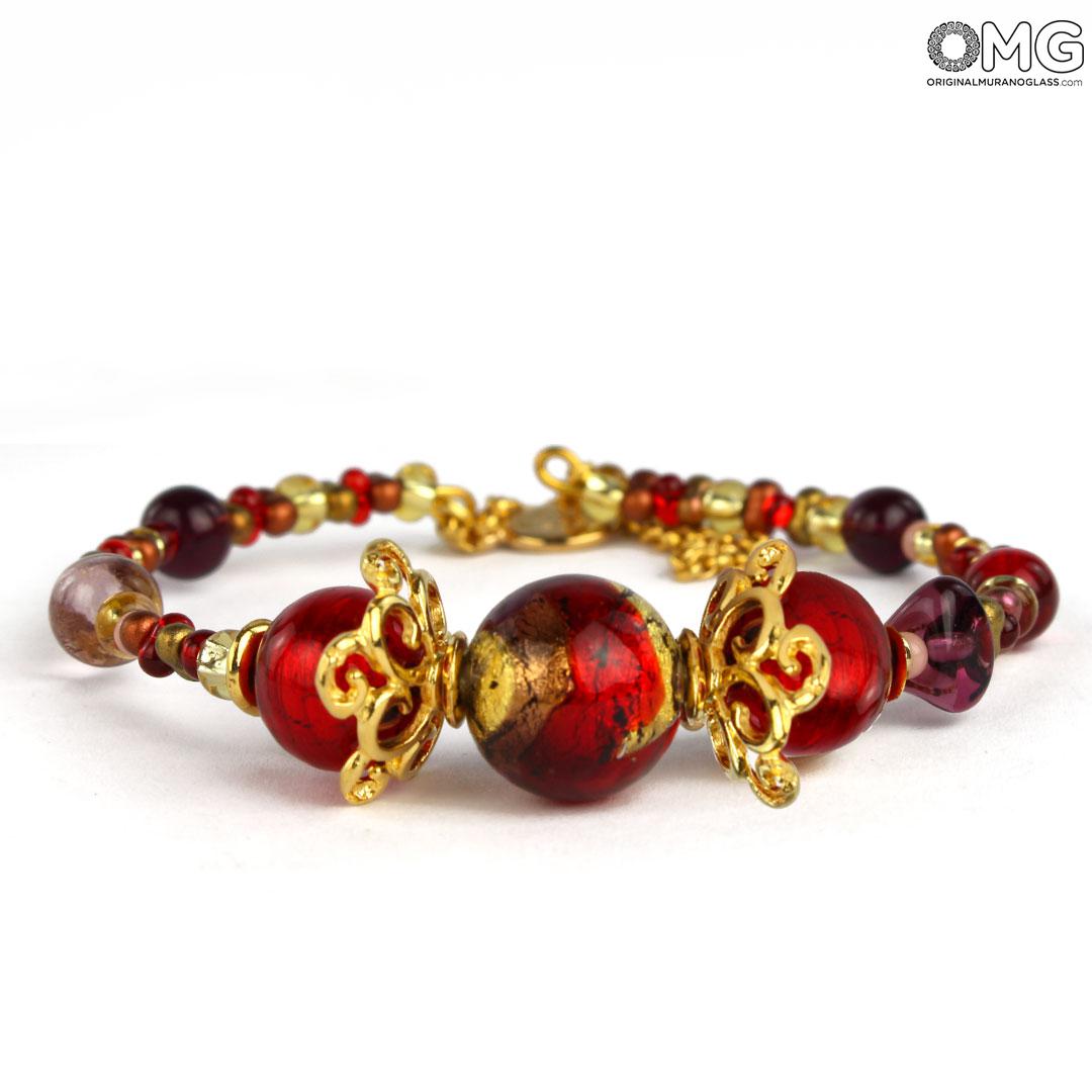 The Murano glass bracelet Cecilia is handmade, each bead is made using the lampworking technique. The pearls feature an intense red color and are enriched with submerged gold leaf 24 kt.