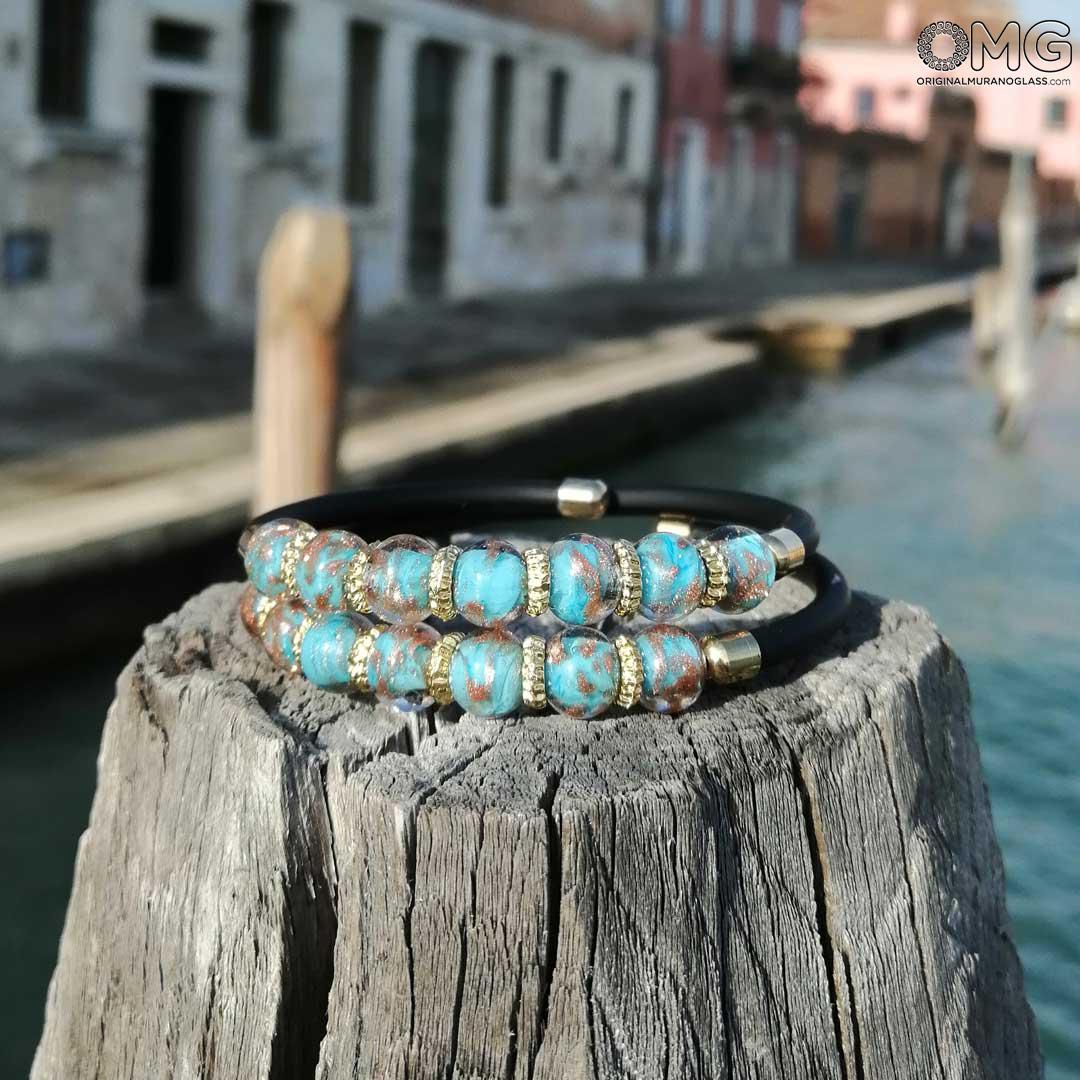 Bracelet Serena Double - Light Blue with Avventurina - Original Murano Glass OMG