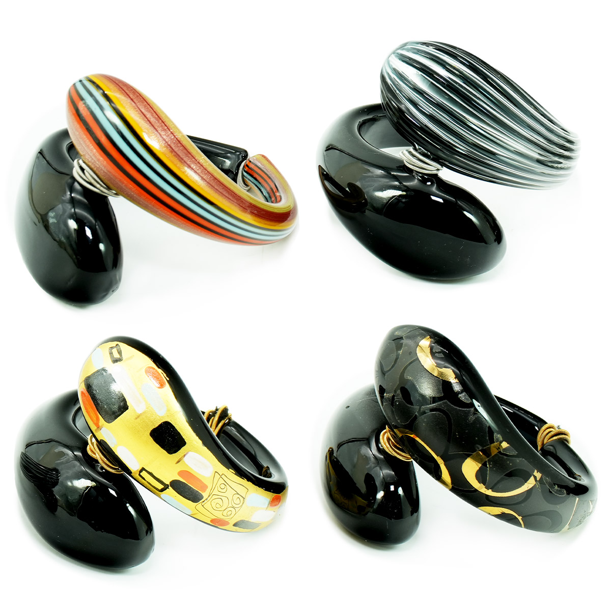 Elegant bracelt for Klimt lovers and not only. The jewellery are blown glass handmade in lamp worked technique, and painted in 24kt gold and klimt style. Very light weight because empty inside. To wear just open ends and widen the internal elastic. Also available in parure in Denise Collection.