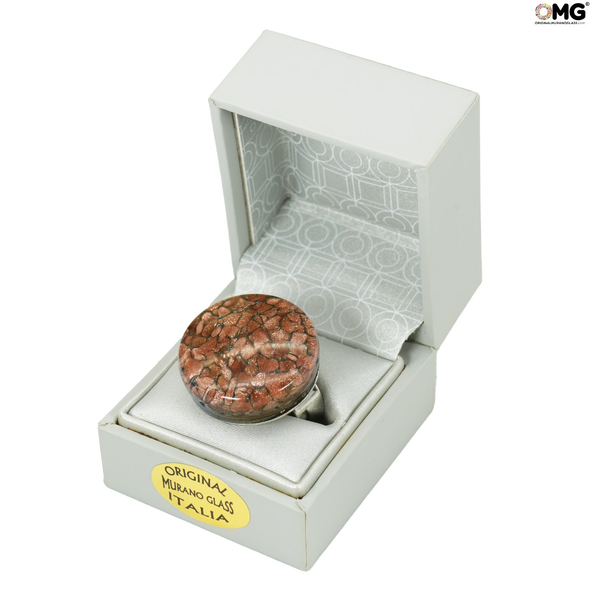 Ring Charming round - with aventurine - Original Murano Glass OMG