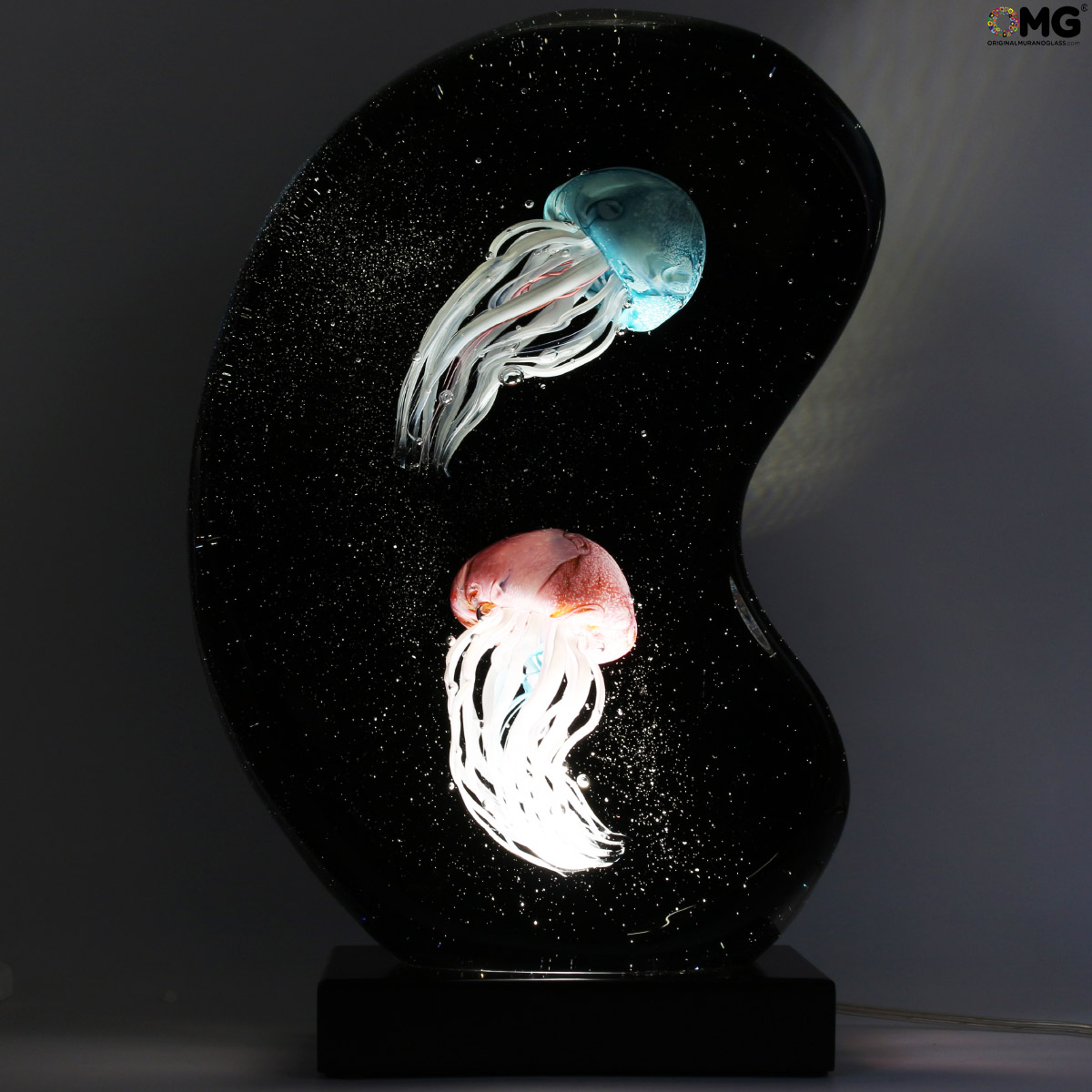 Aquarium à méduses exotiques - avec lampe LED - Verre de Murano original Omg