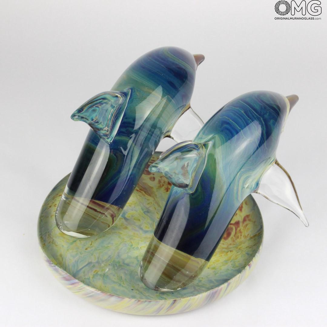 Dolphins - Sculpture in chalcedony - Original Murano glass OMG