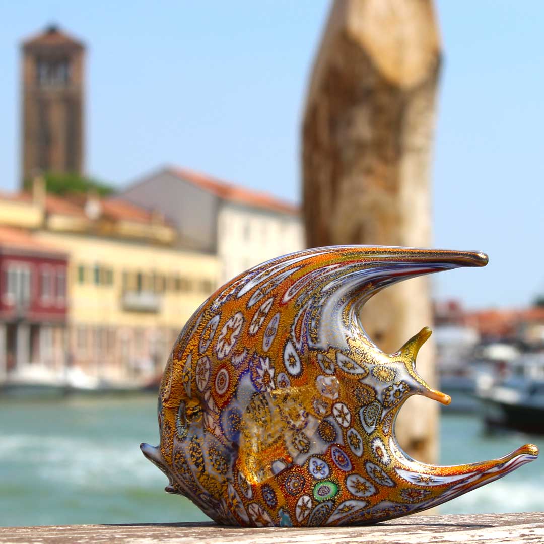 Figurine de poisson - Murrine Millelfiori et or - Verre de Murano authentique