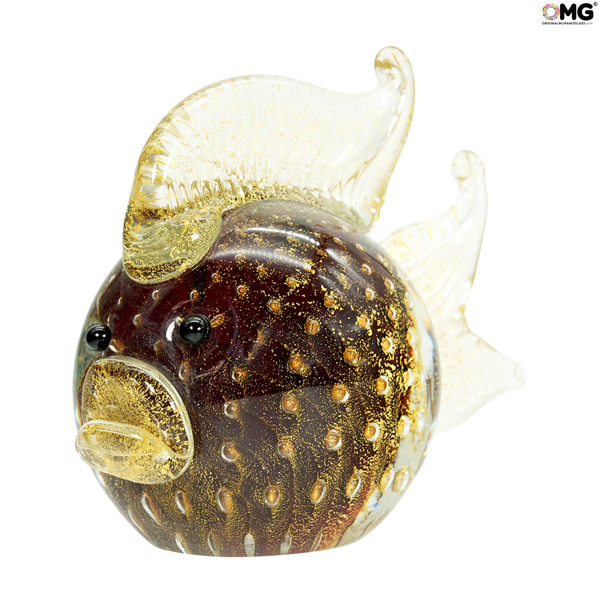 Poisson - avec de l'or véritable - Verre de Murano original OMG