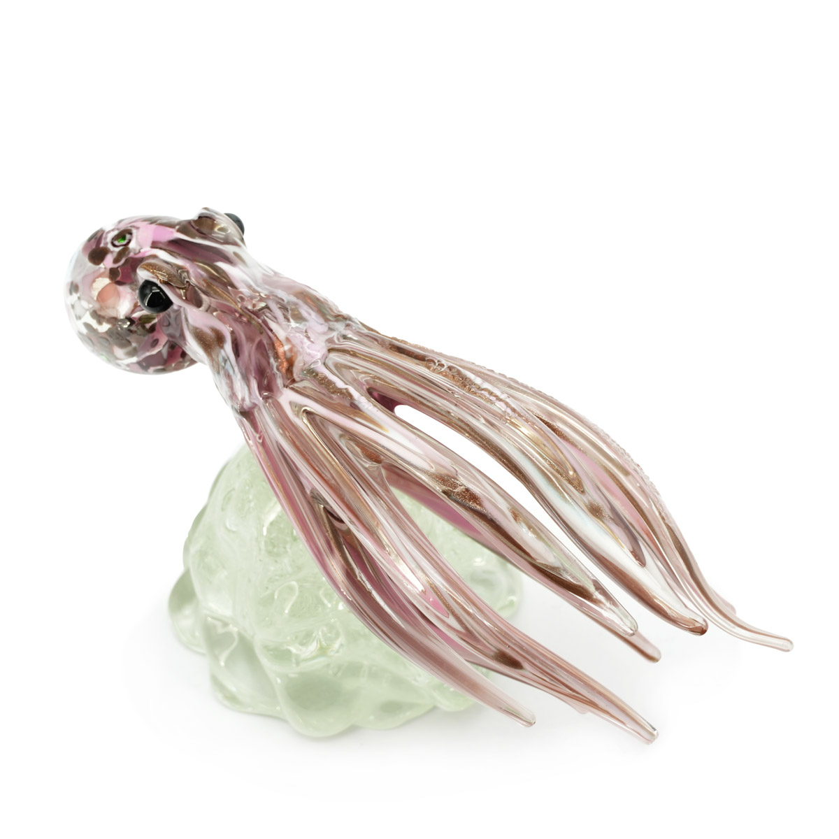 Poulpe rose sur une vague de verre - Verre de Murano original OMG