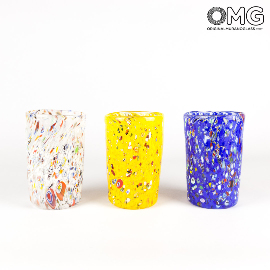 Make your table more colourful with this set of 6 glasses, blown made in Original Murano Glass with Millefiori.