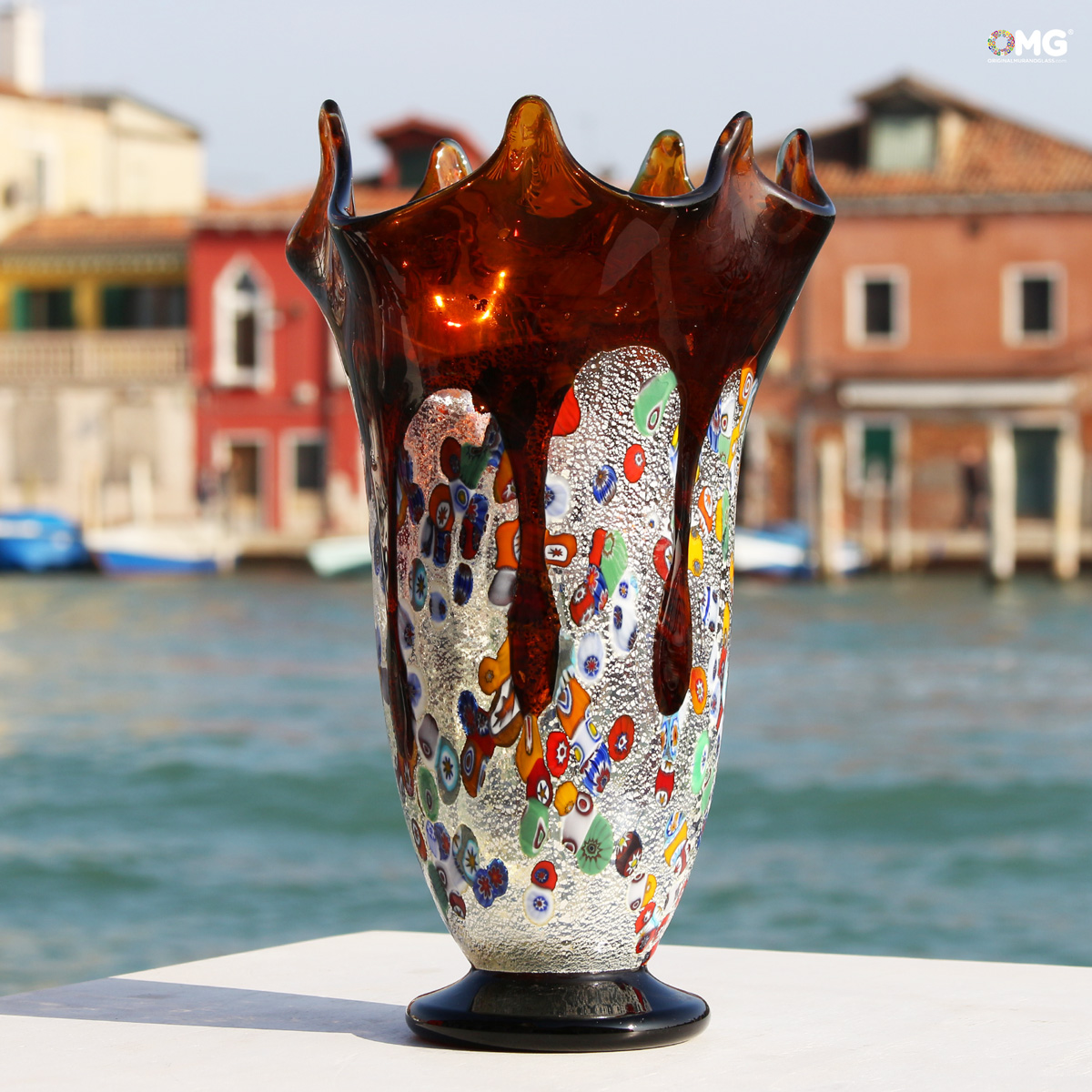 Géranium Ambre - Vase - Verre de Murano Millefiori et argent