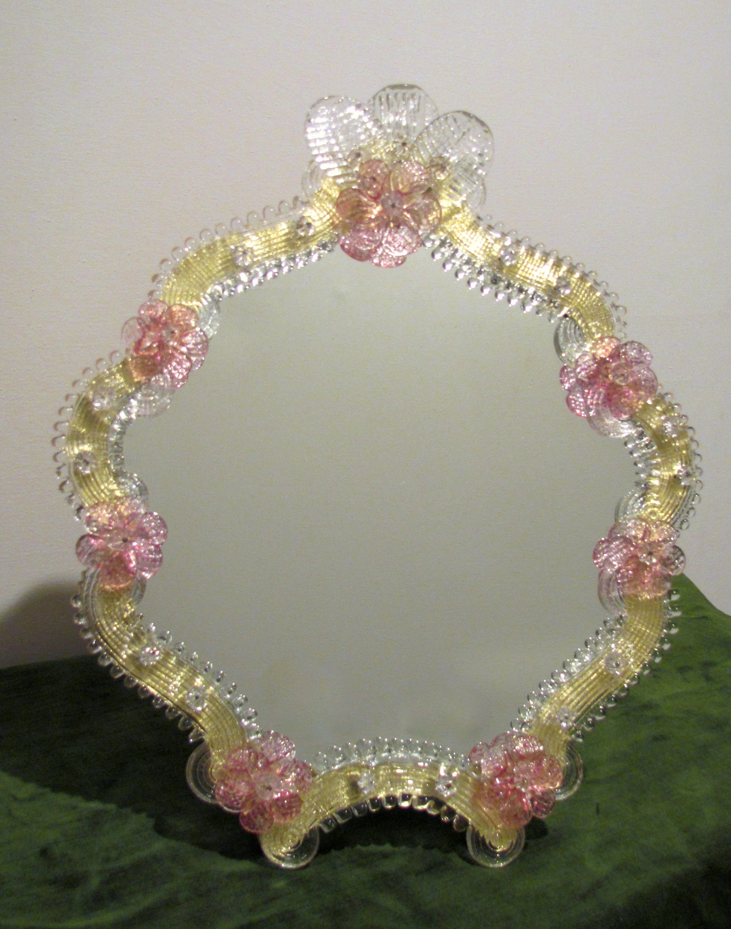 Table Venetian mirror, handcrafted, made in original Murano glass.